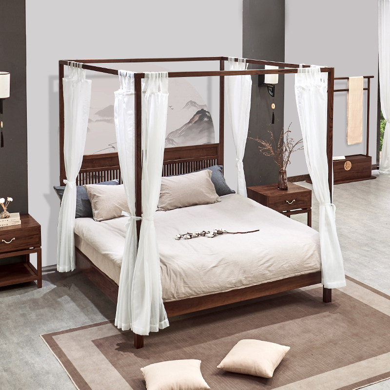 Сплошное дерево новая китайская кровать на полке 1,8 метра с четырьмя годами кровать для выщипывания кровати с двуспальной кровать