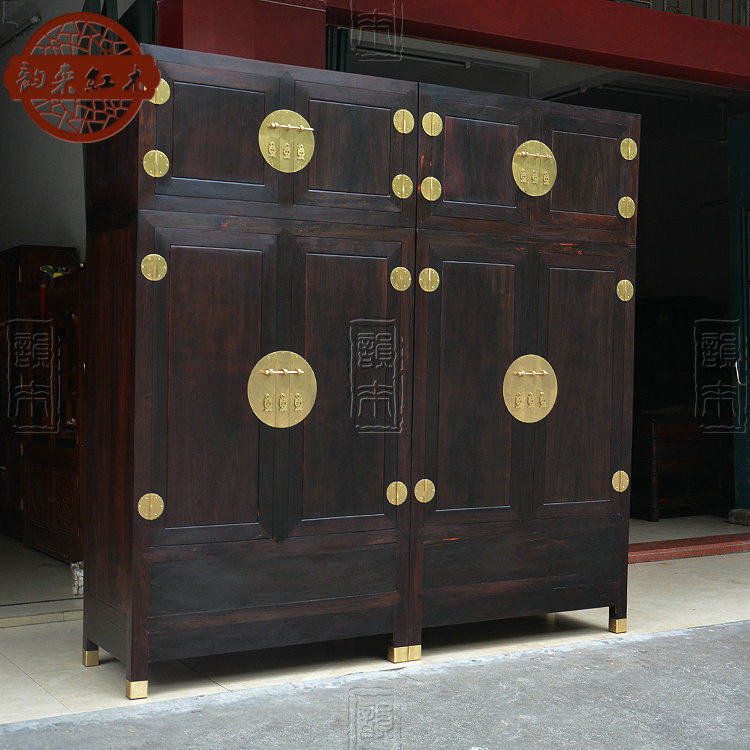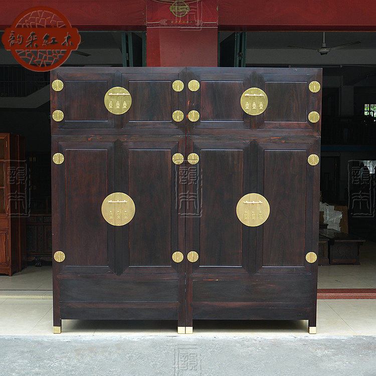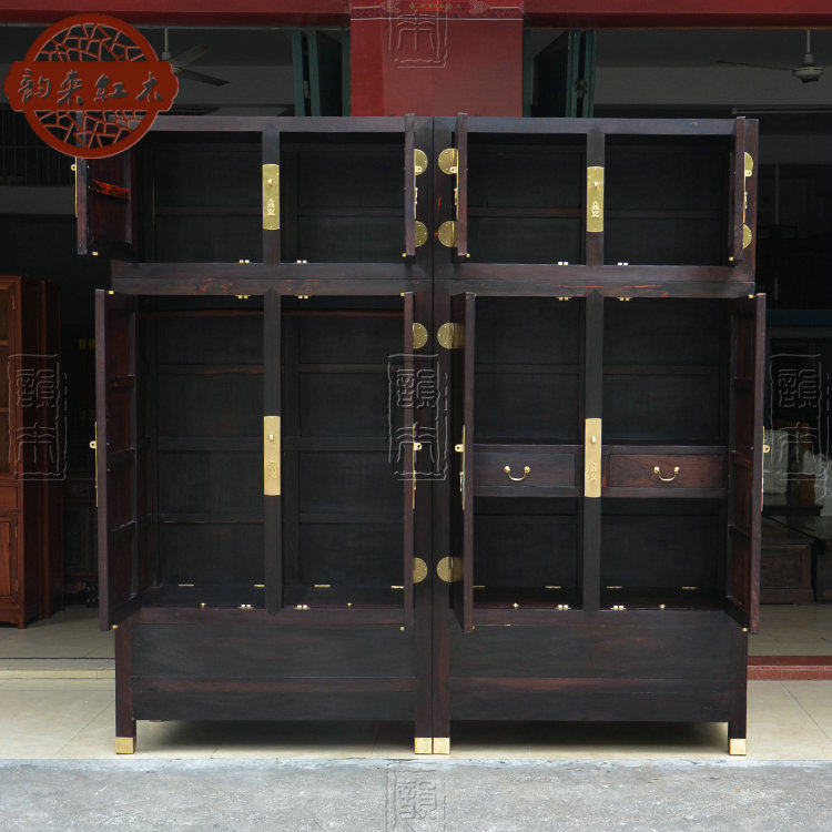 Laos Big Red Red Rase Wrail четырехвурная коробка шкафа с твердым деревом гардеробного гардероба Mingqing Classical Furniture