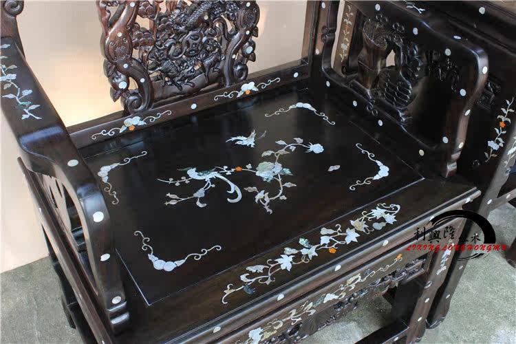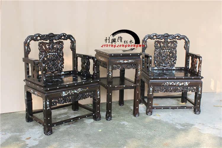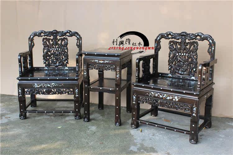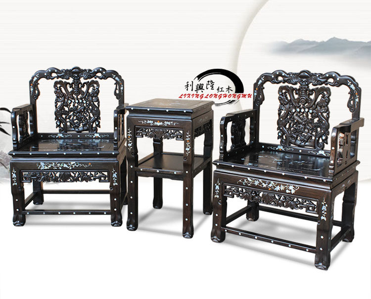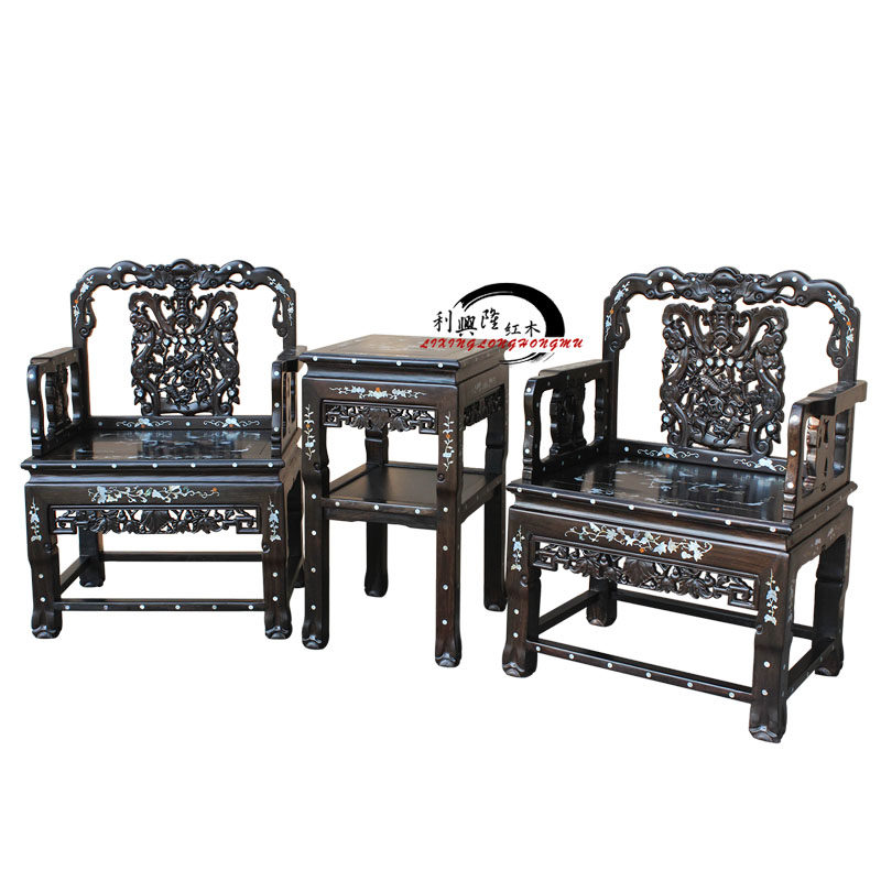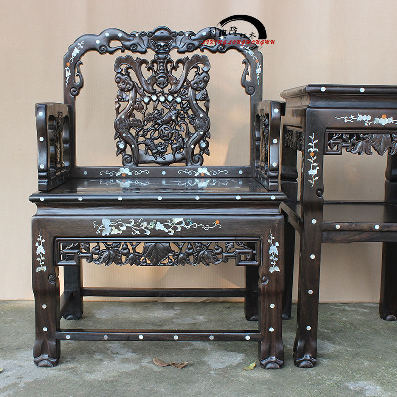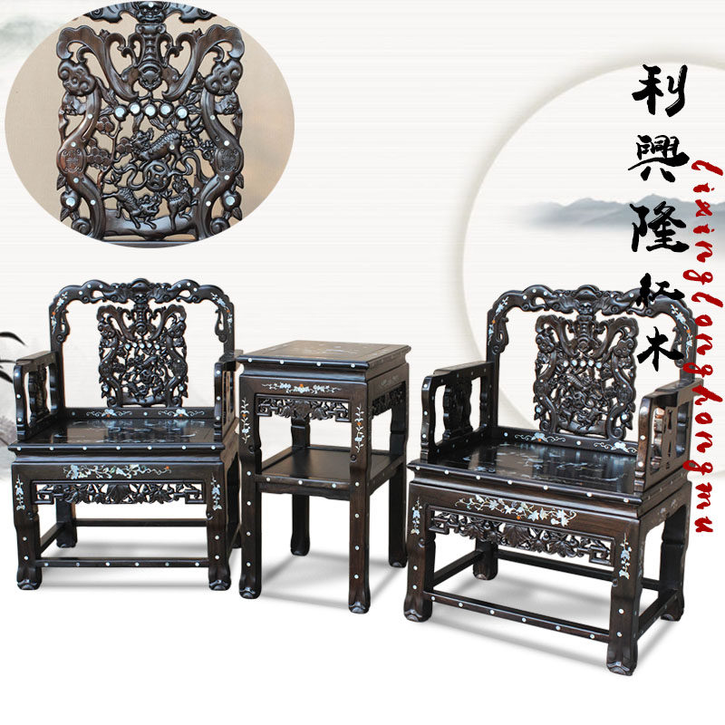 Комплект из черного дерева Эбен, кресло, антикварная инкрустация камня, 3 предмета, китайский стиль
