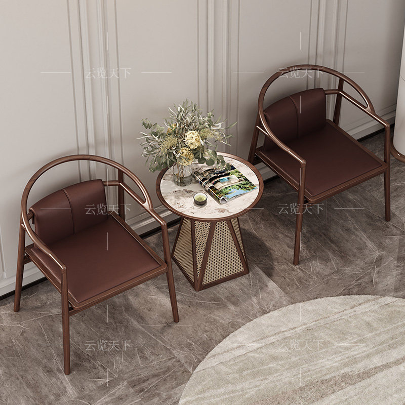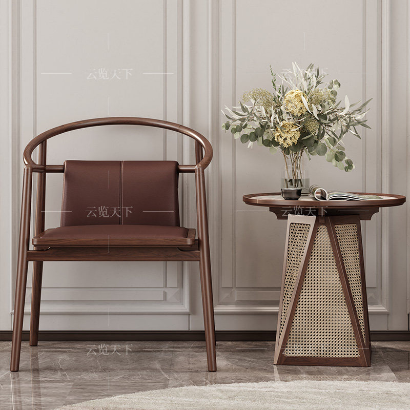 Новый китайский стиль круговой стул Трех -набор из североамериканских черных грецких орехов Глав