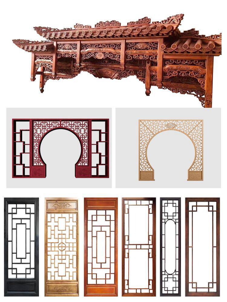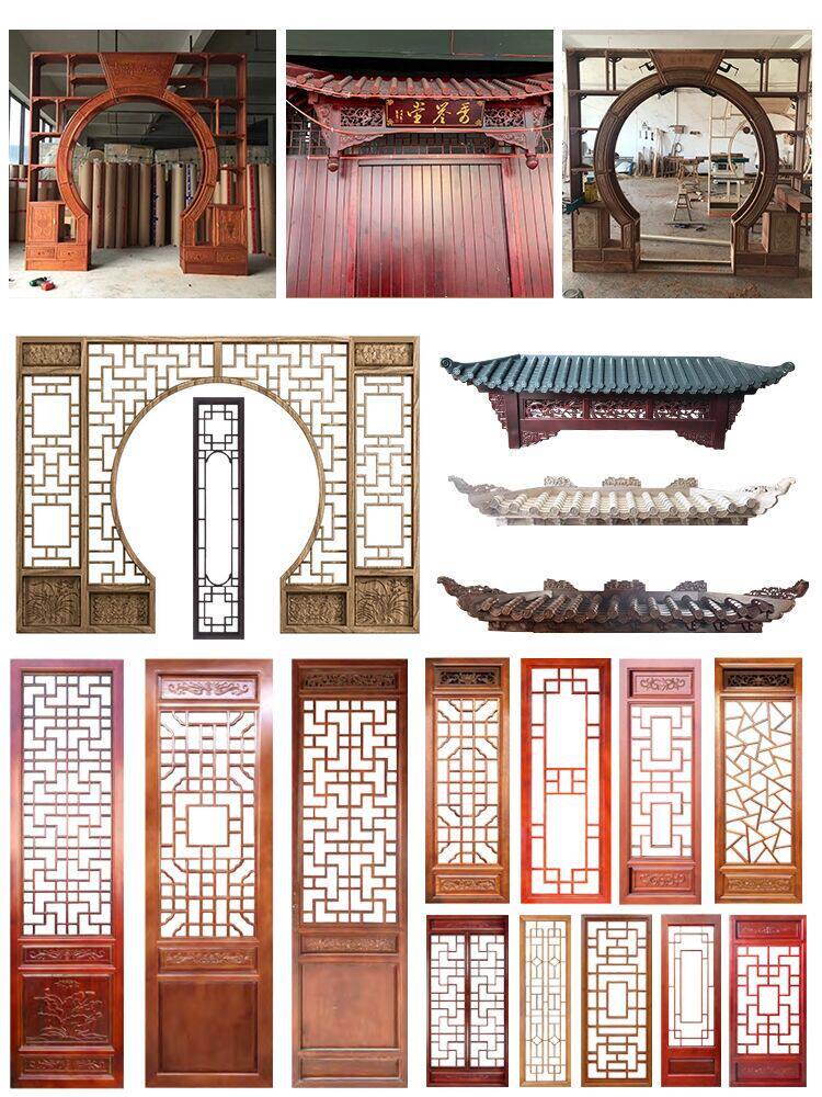Индивидуальная сплошная древесная решетчатая перегородка Полая древесная сетка Dongyang дерево вырезанные древние двери и окна.