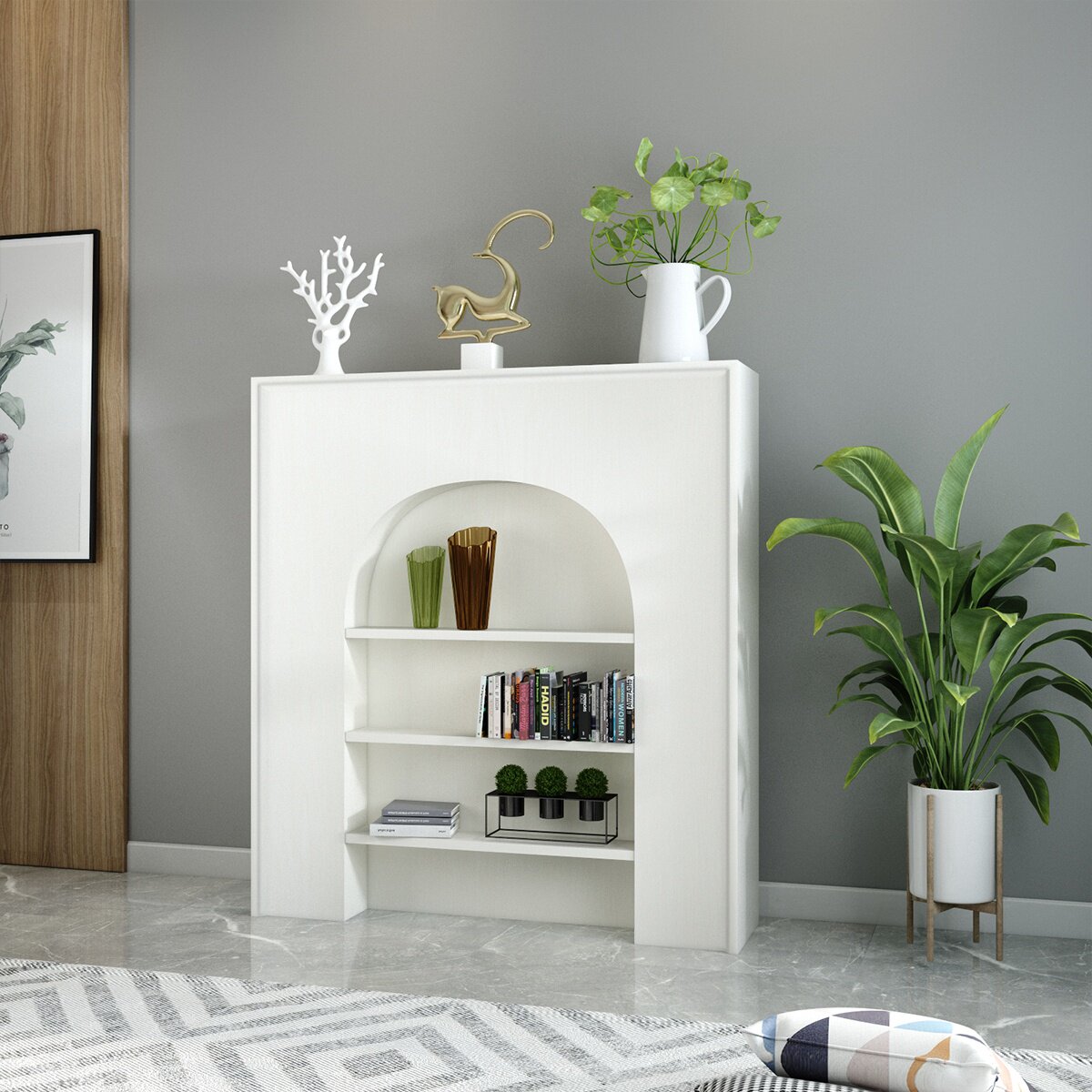 Сплошное дерево белое минималистское французское ретро -камин