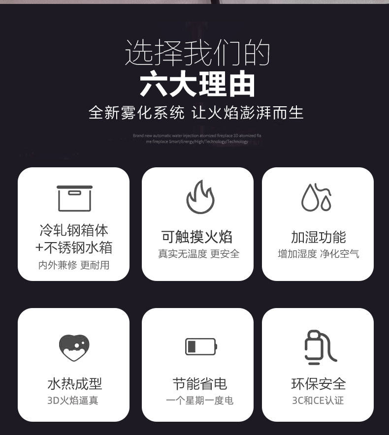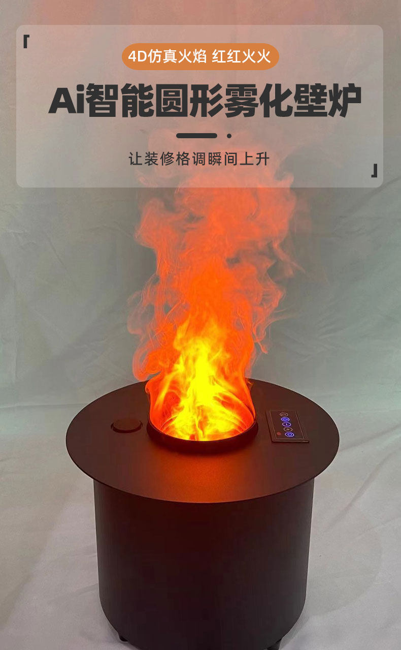 好意年 Круглый квадратный 3D распыленный камин, встроенный электронный сердечник камина, имитирующий пламя, гостиная, дом