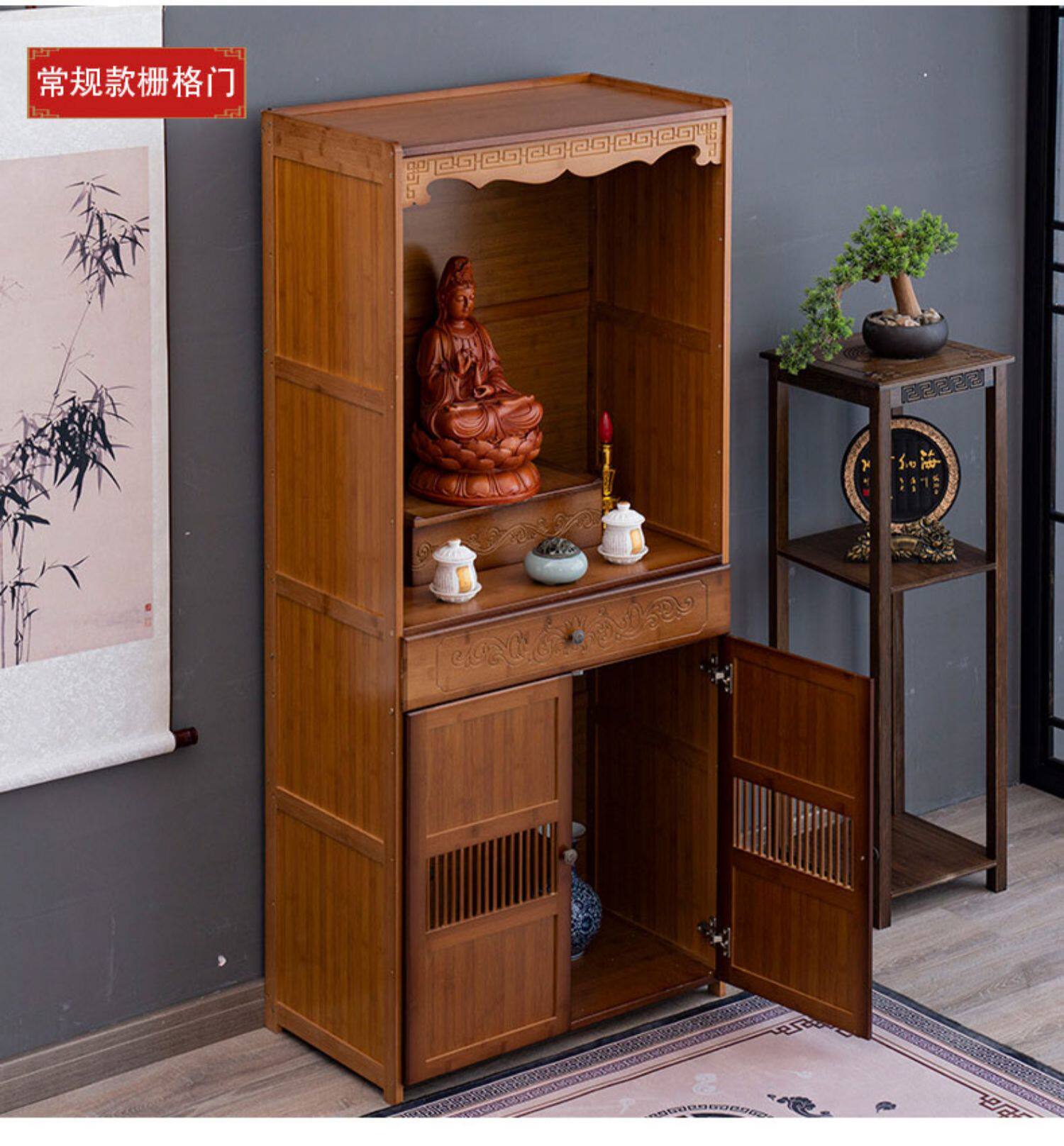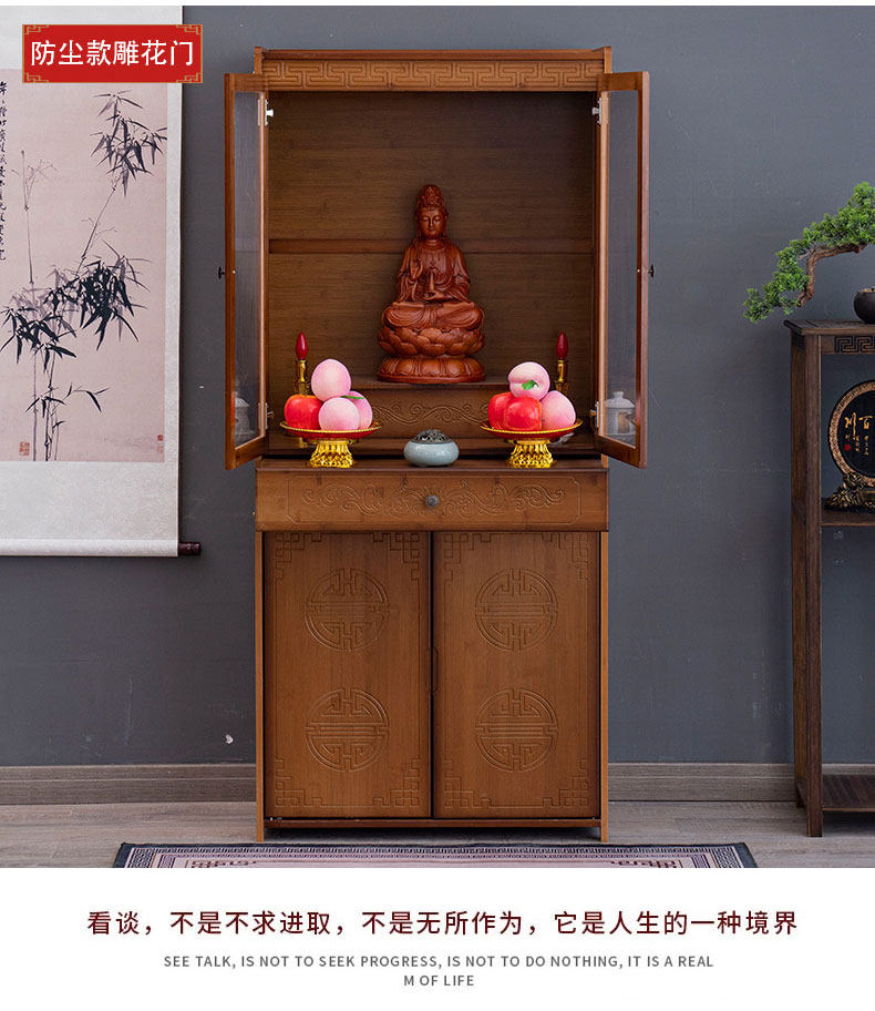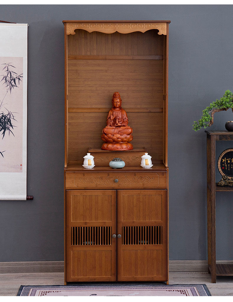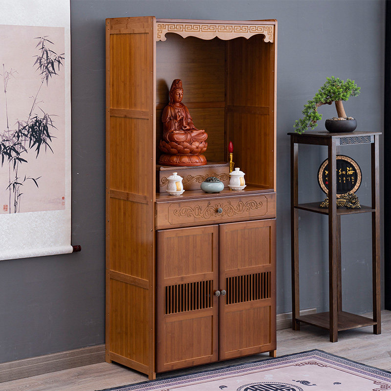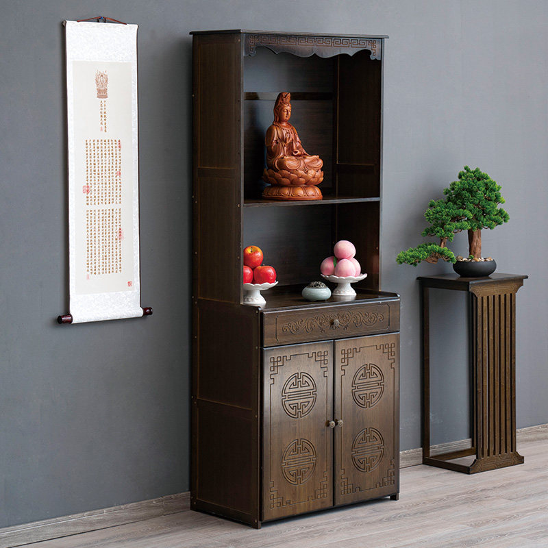 Буддийский шкаф на Нанчжу Семейный Храм Гуанейн Будда Статуя Бога Бога Бога, падение благовоний, простой вибрационный шкаф, поклоняющийся шкаф