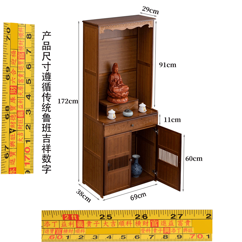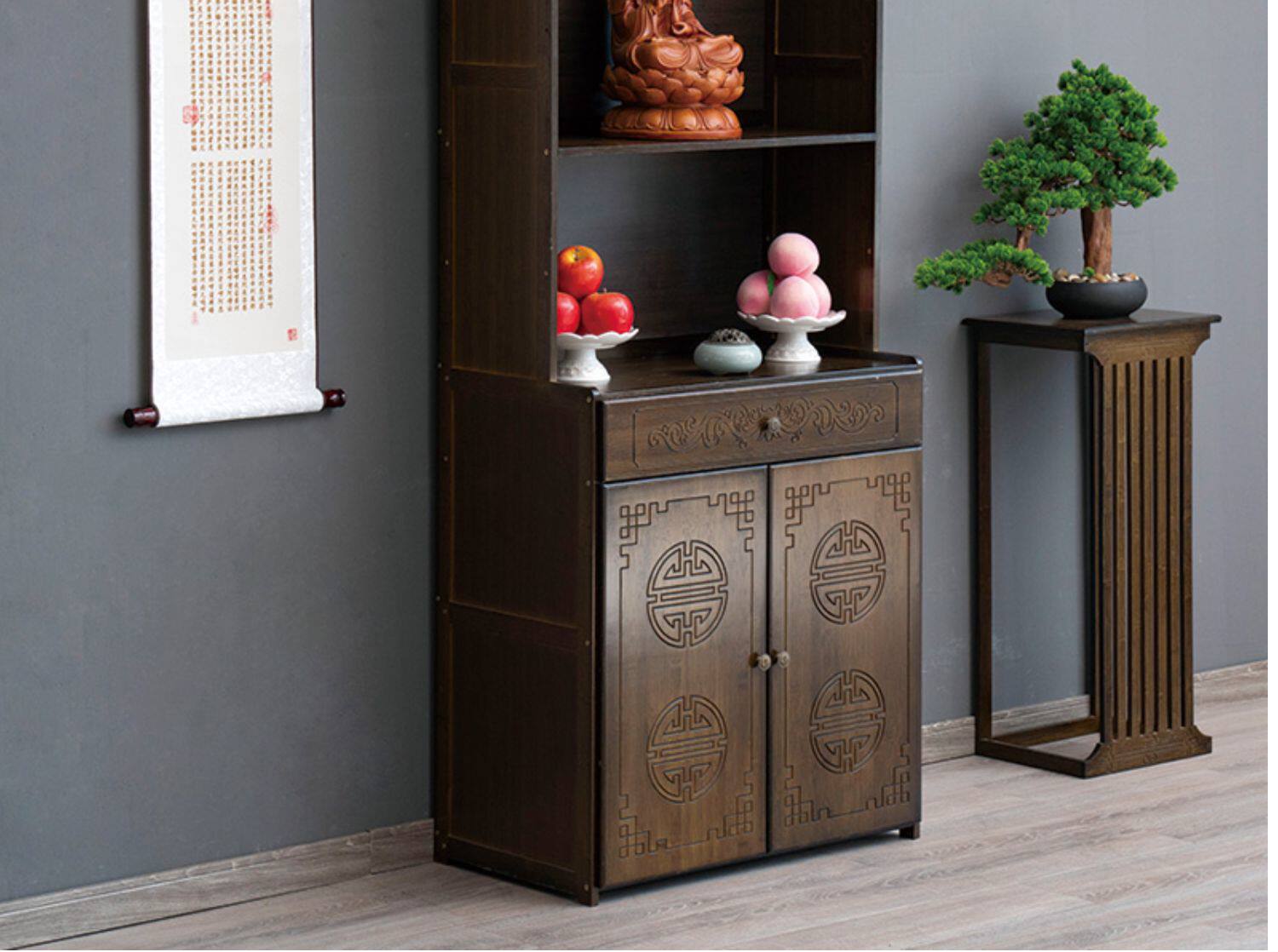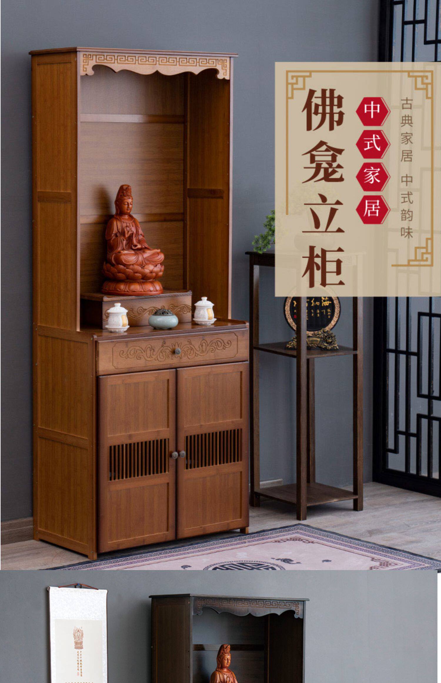 Буддийский шкаф на Нанчжу Семейный Храм Гуанейн Будда Статуя Бога Бога Бога, падение благовоний, простой вибрационный шкаф, поклоняющийся шкаф