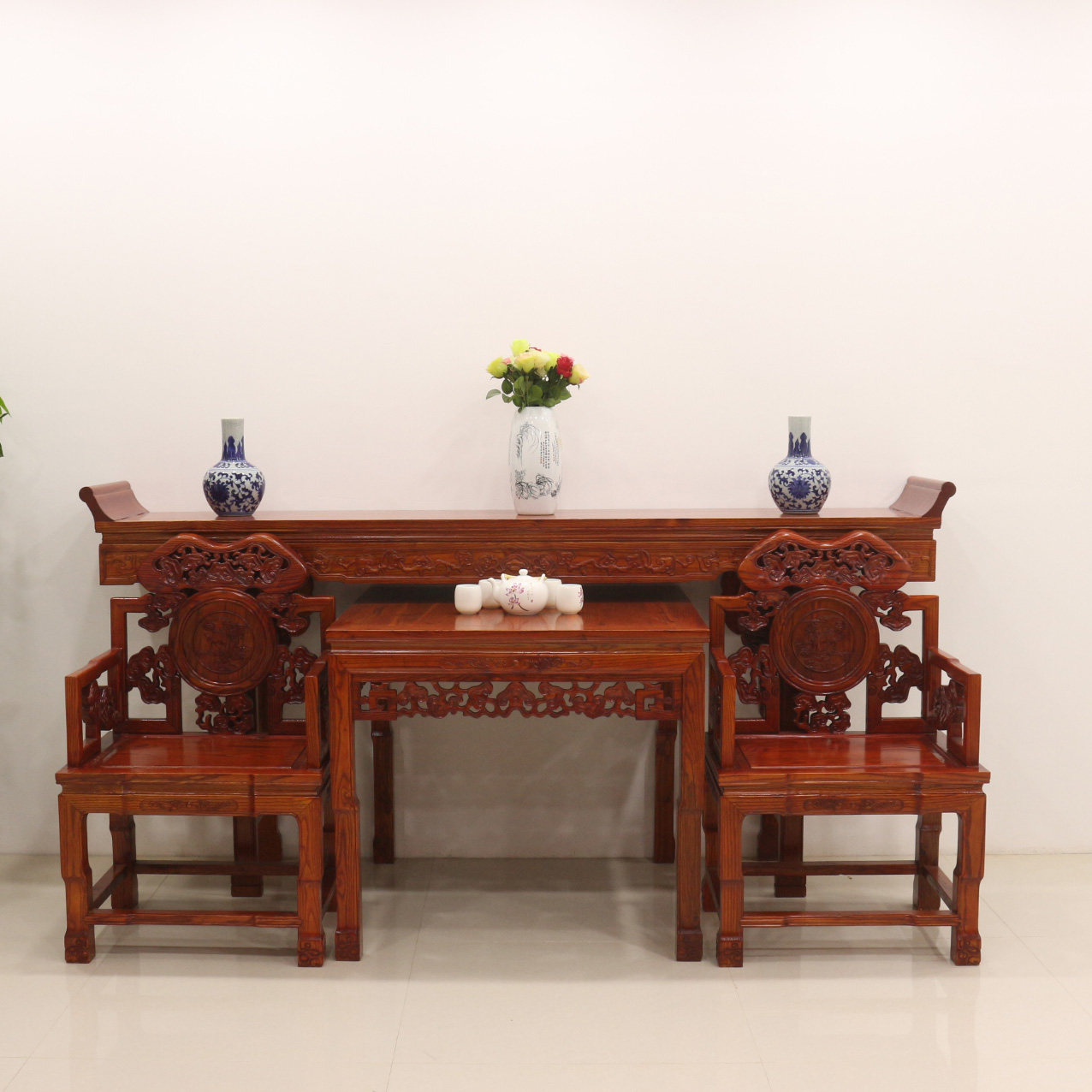 Ganoderma lucidum Средний зал имитация твердых древесных вклейки в эфире и цин -классическом китайском стиле китайского стиля.