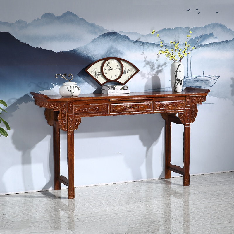 Дань Mahogan вместе, вместе, сплошное дерево Terrace Terrace Куриное крыло нового китайского корпуса аромата Будда Статуя Статуя для Стола Будда Терраса Семья