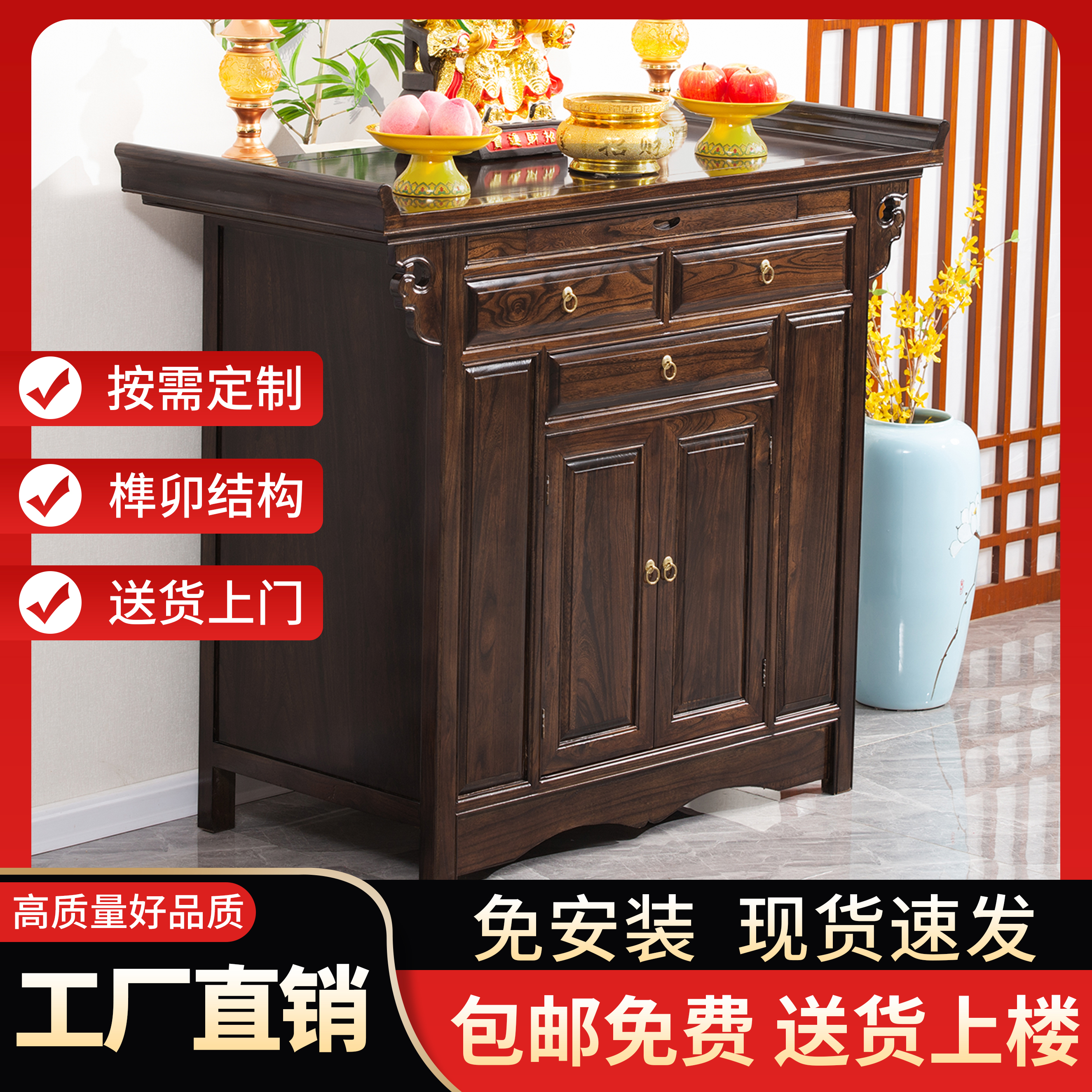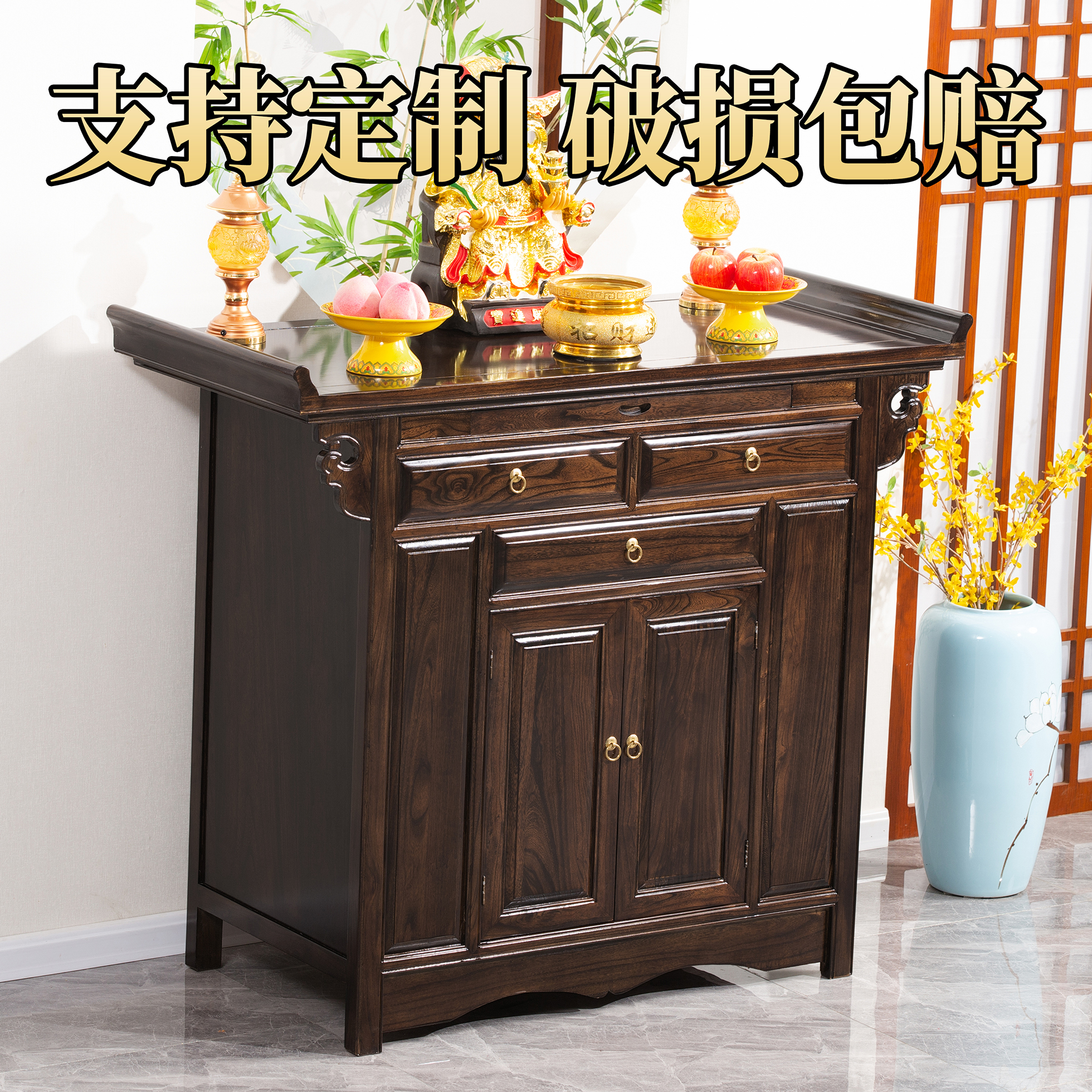 Стол для подношений из цельного дерева, новый буддийский алтарь в китайском стиле, футляр для благовоний, встроенный домашний шкаф Будды, алтарь в честь Бога Богатства и Бодхисаттвы, гладкая поверхность в среднем зале