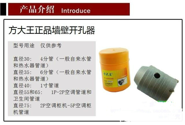 Настенные отверстия Fangda подходят для различных видов отверстий для кондиционирования электрического молотка, кирпичных стен и т. Д.