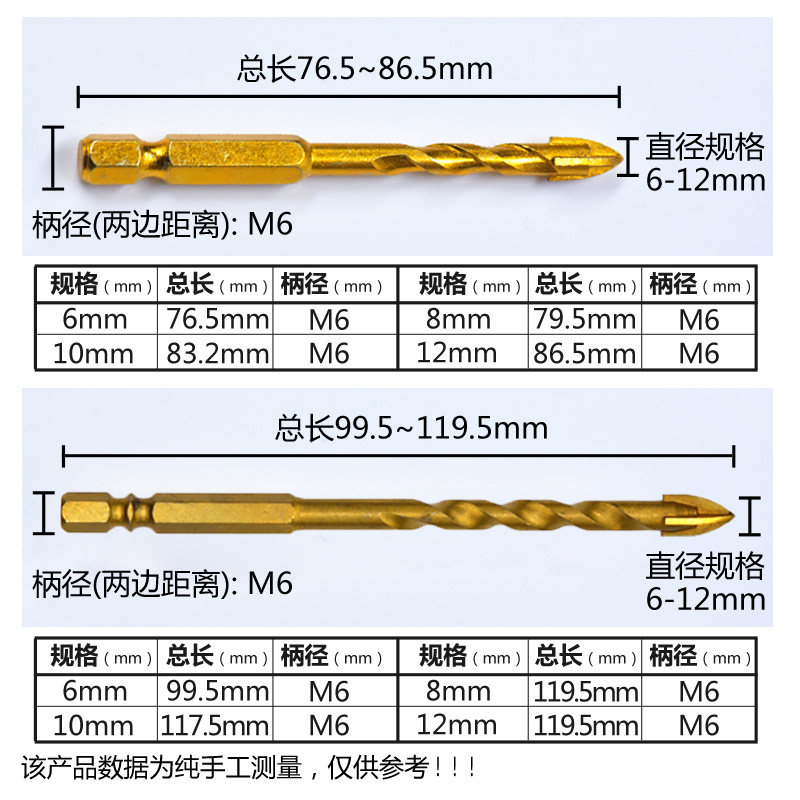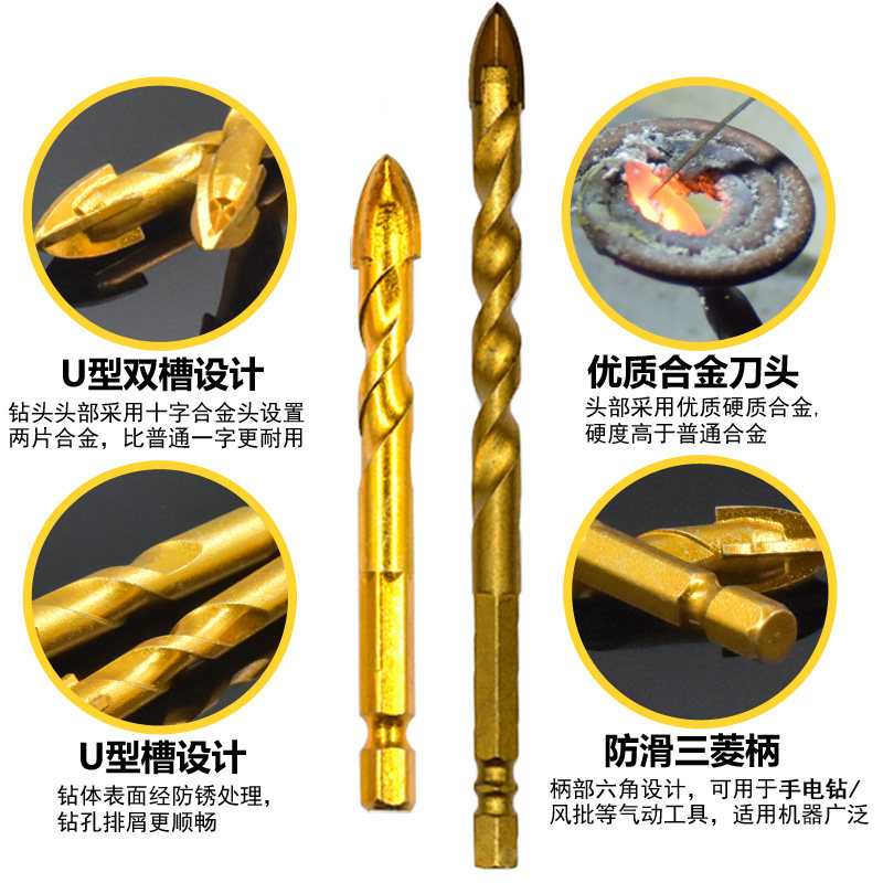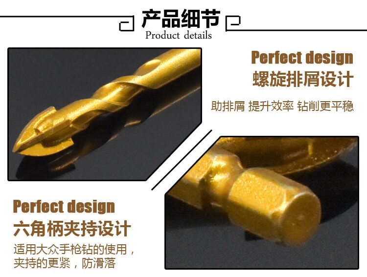 Длинное шестиугольное керамическое стеклянное металлическое сверло, комплект с косичкой