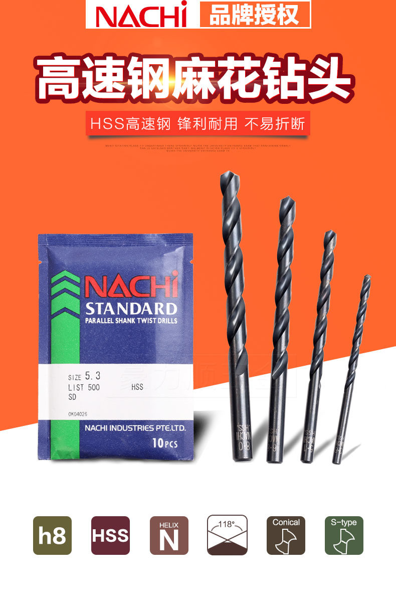 Япония Bomi Nachi List 500 Высокоскоростная стальная ручка с прямой ручкой Drill Drill M2.9-M5.2