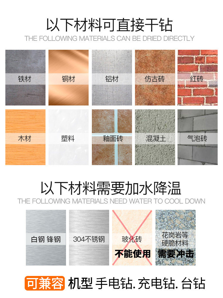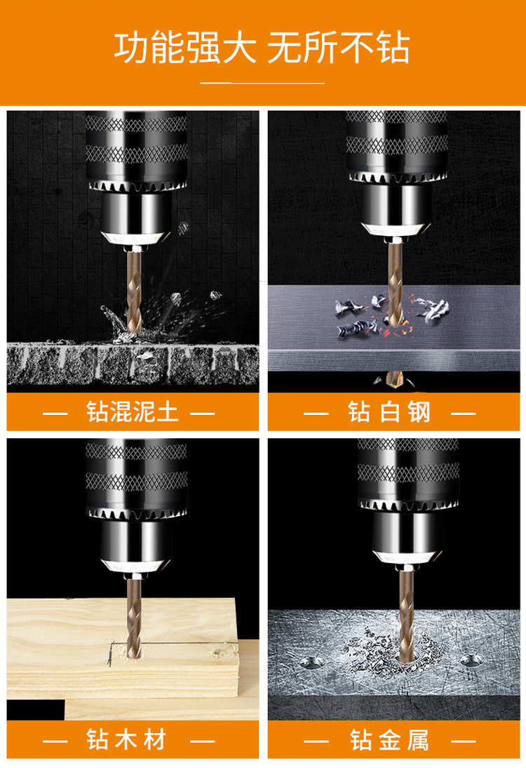 бурение белого стального ножа требует скорости 2000 года или более. Бурение его и упоминание о тренировке с фонариком железного перхоти для предотвращения запутанного тренировки. Гранит бурения и бетон должны влиять на функцию. Угловой железо не может использовать функцию удара.