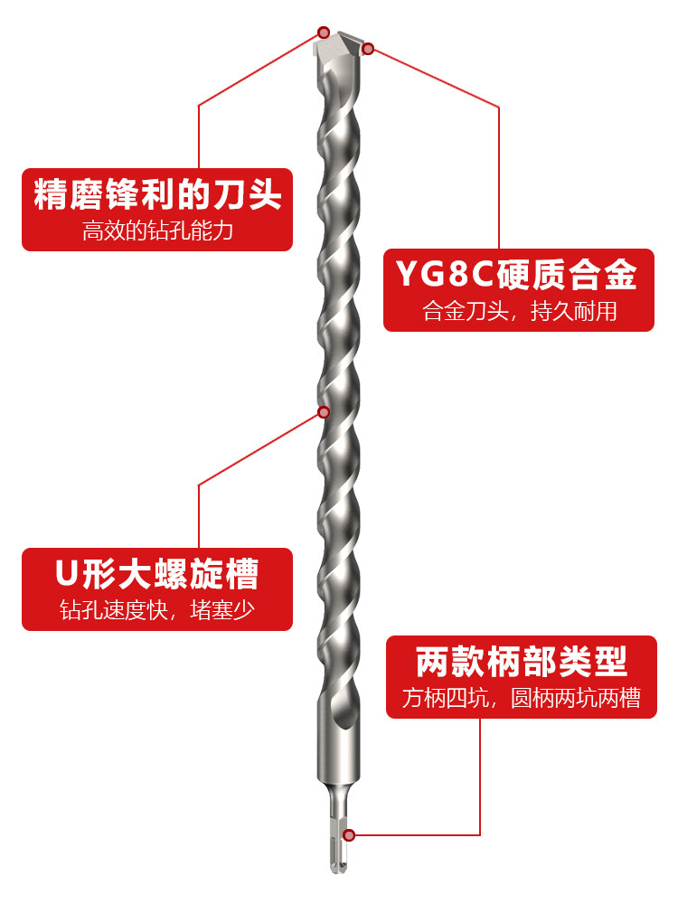 Электрический рукояток буровой головки из четырех ям 25-45 см Удлинный настенный бетон.