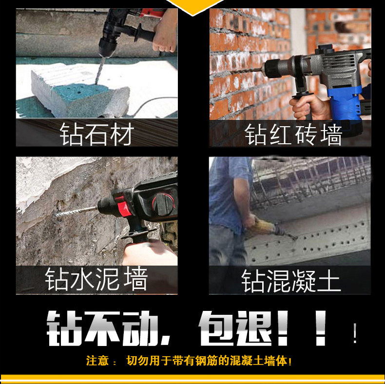 Электрический молоток буровой битва круглый металл Два яма и двух оборотных цементных стеновых полюса с 6 -миллиметровым круглом ударом головки бит