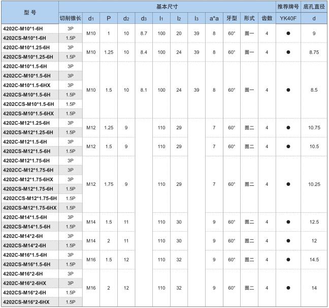 YK40F 4202CS 4202CS-M10*1,5-6H Zhuzhou Diamond Straight Coun