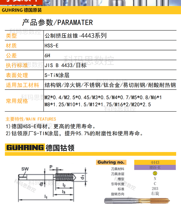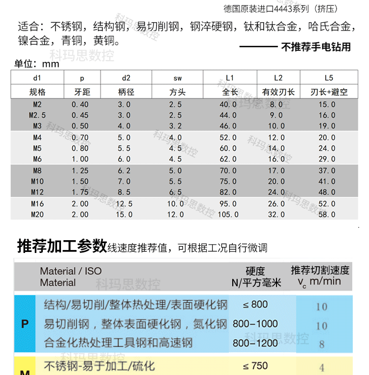 | Цвет: | М2*0,4 [серия 1017], М2,5*0,45 [серия 1017], М3*0,5 [серия 1017], М4*0,7 [серия 4443], М5*0,8 [серия 4443], М6*1 [серия 4443], М8*1,25 [серия 4443], М10*1,5 [серия 4443], М12*1,75 [серия 4443], M16*2 【серия 4443】, М2*0,4 [для алюминия], M2,5*0,45【для алюминия】, М3*0,5 [для алюминия], М4*0,7 [для алюминия] |