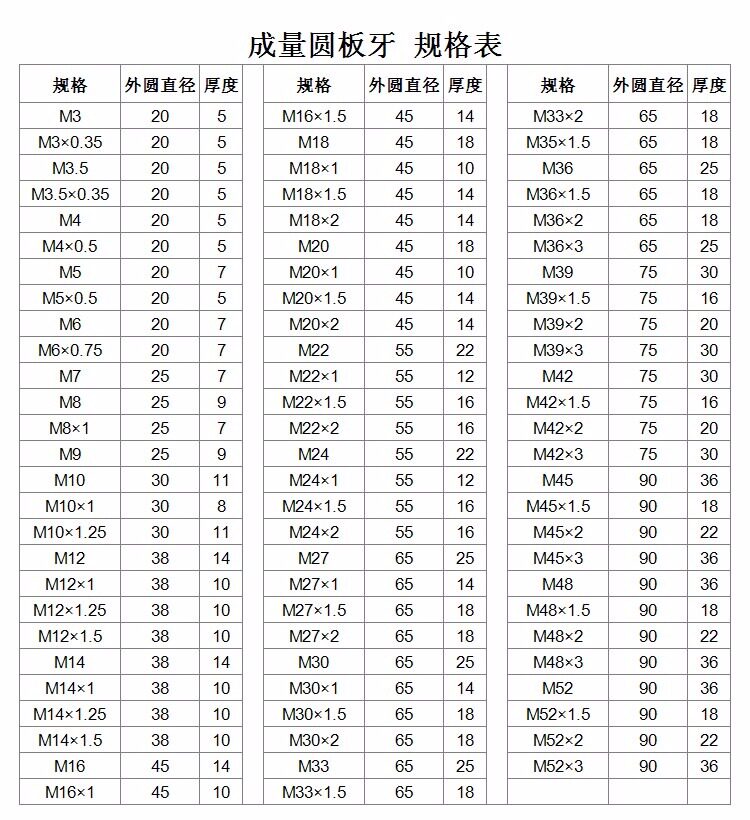 Подлинное измерение круглой платы M22M24M27M30M36*4*3,5*3*2*2*1,5*1