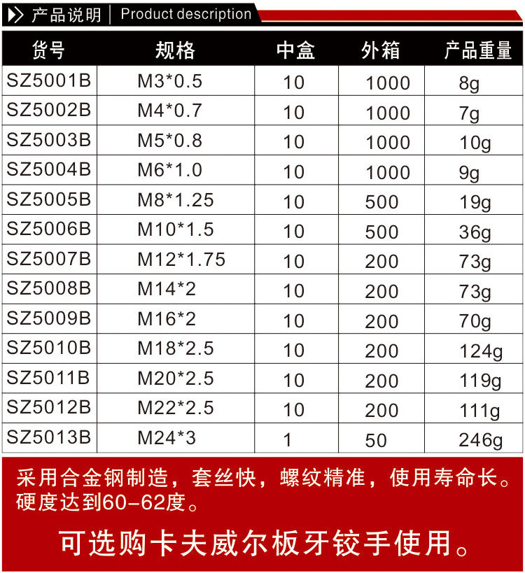 | Цвет: | M3*0.5, M4*0.7, M5*0.8, M6*1.0, M8*1.25, M10*1.5, M12*1.75, M14*2, M16*2, M18*2.5, M20*2.5, M22*2.5, M24*3 |