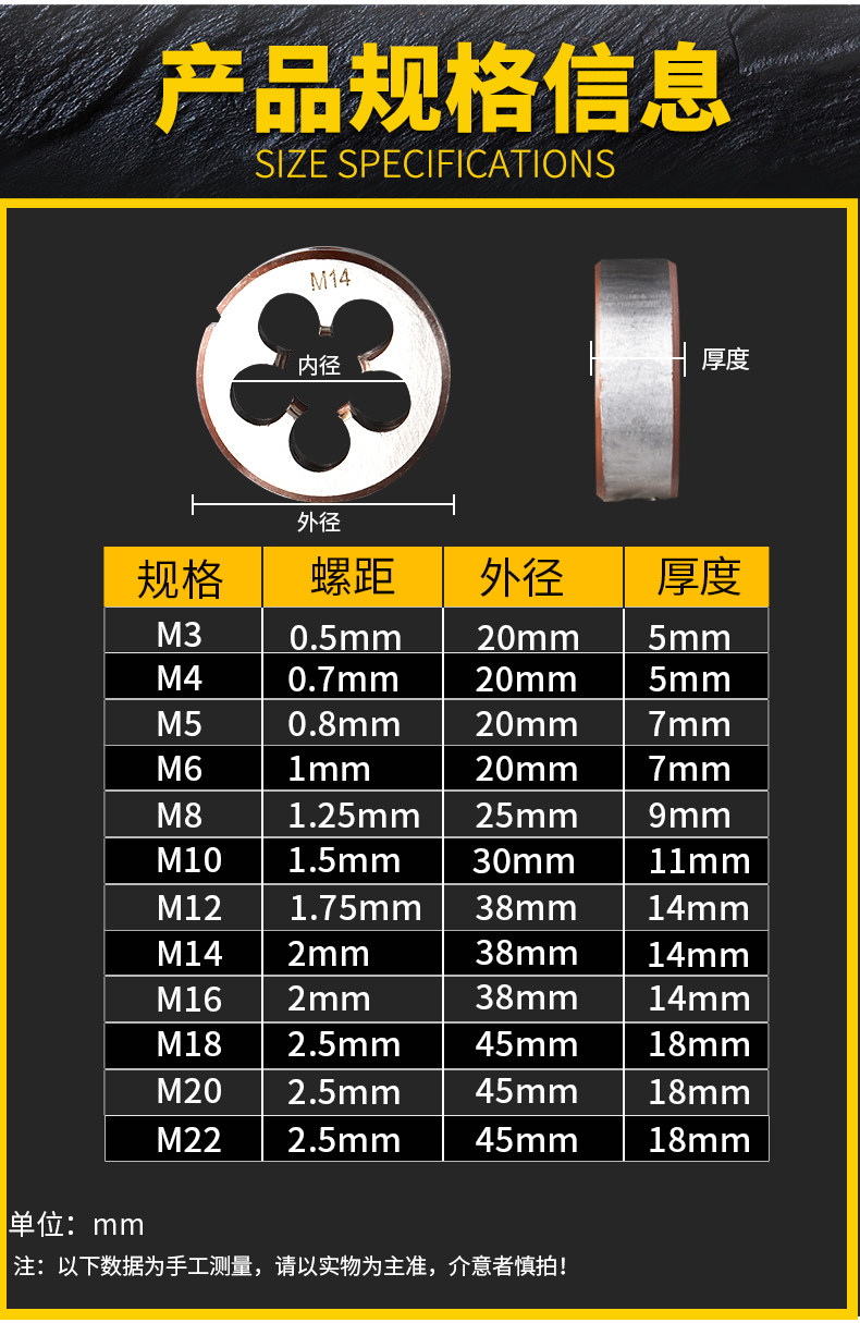 Металлическая стальная пластина Ручной зуб Ручной набор шелковой круглый зубной сад M4/5/6/8/10/12/14/16/18
