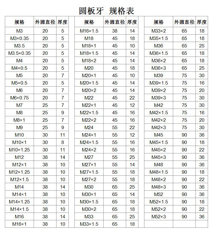 Сплава Стальная круглая доска зубов M3M4M4M5M6M8M10M10M12 M14M16M18M20*2*1,5*1,25*1 Толстые мелкие зубы