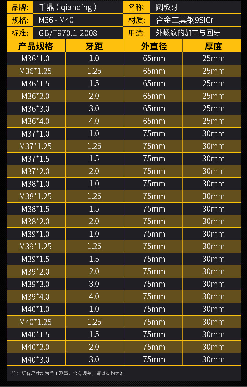 | Цвет: | M36*1, M36*1.25, M36*1.5, M36*2, M36*3, M36*4 (стандартные зубы), M37*1, M37*1.25, M37*1.5, M37*2, M38*1, M38*1.25, M38*1.5, M38*2, M39*1, M39*1.25, M39*1.5, M39*2, M39*3, M39*4 (стандартный зуб), M40*1, M40*1.25, M40*2, M40*3 |