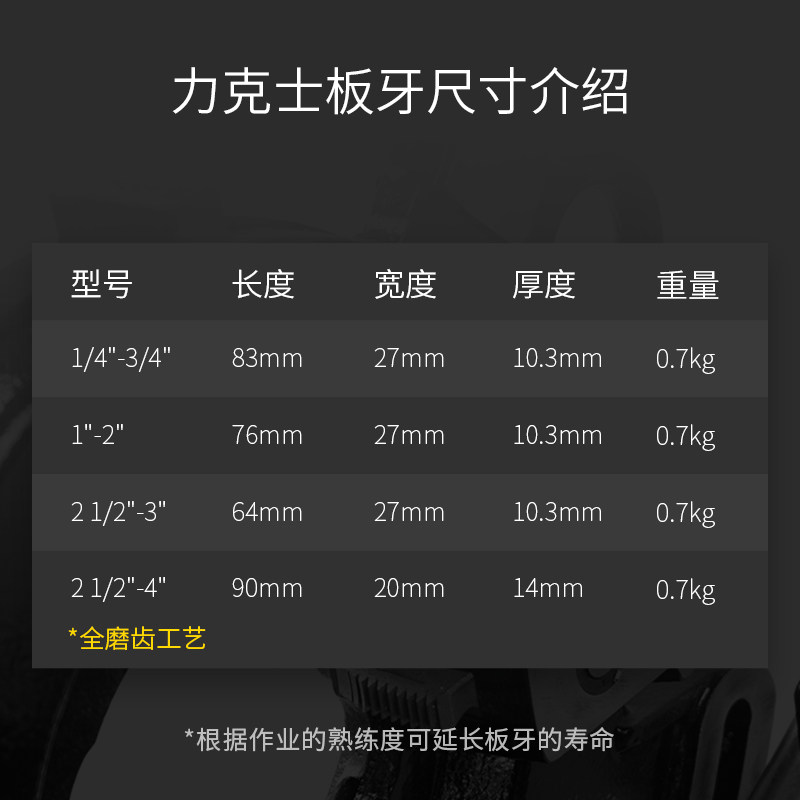 - 1/2-3/4 дюйма (50A высокие пластиковые зубы, для оцинкованных труб)