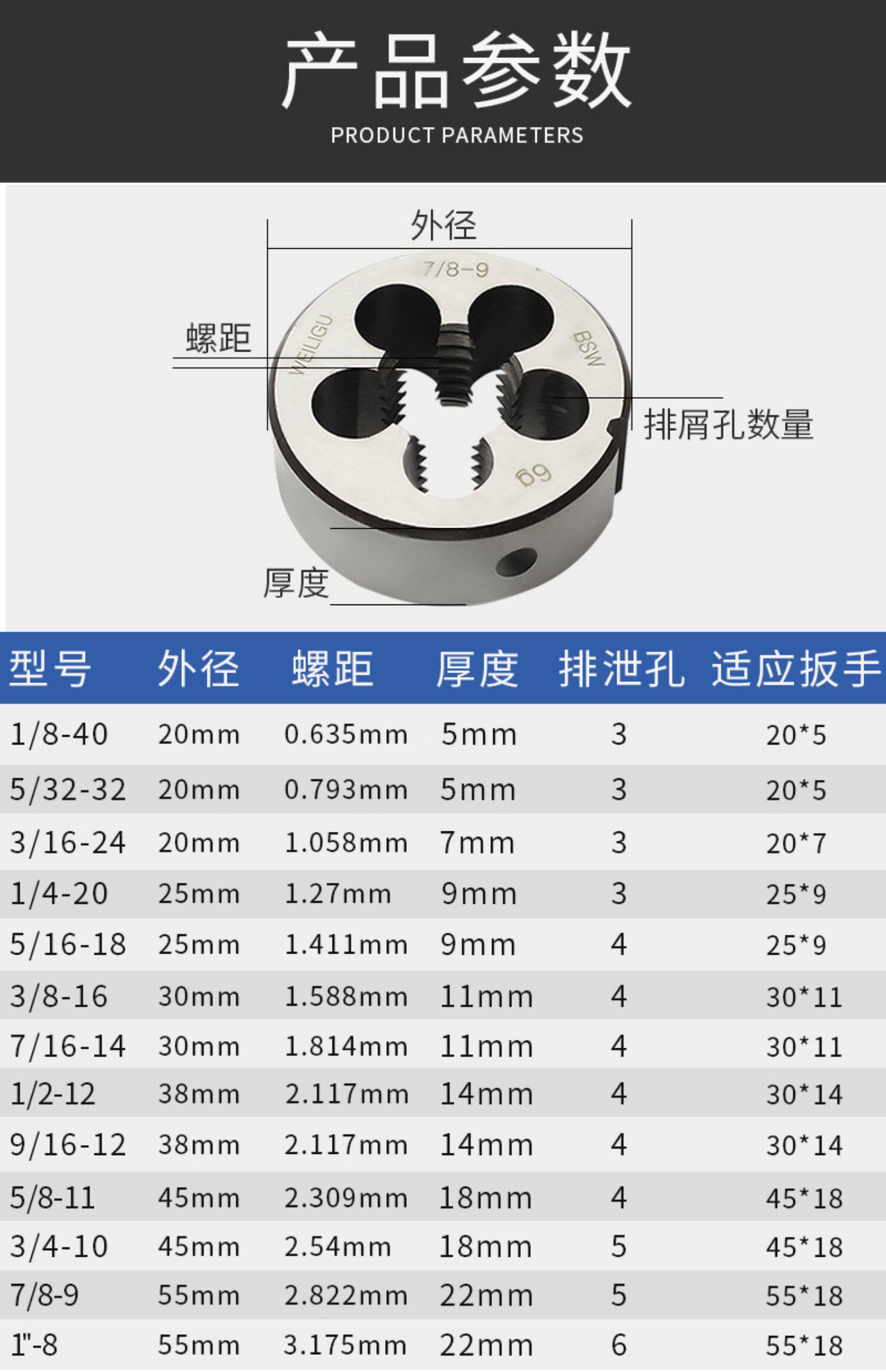 | Цвет: | 1/8-40, 5/32-32, 3/16-24, 1/4-20, 5/16-18, 3/8-16, 7/16-14, 1/2-12, 9/16-12, 5/8-11, 3/4-10, 7/8-9, 1 ‘’ 8, Специальная тяга 20x5 (подходит для 1/8-5/32), Специальная тяга 20x7 (подходит для 3/16), Special Pull 25x9 (подходит для 1/4-5/16), Специальная тяга 30x11 (подходит для 3/8-7/16), Выделен 38x14 (подходит для 1/2-9/16), Выделенная тяга 45x18 (подходит для 5/8-3/4), Выделенная тяга 55x18 (подходит для 7/8-1 "8) |