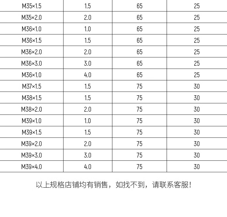 | Цвет: | M30 × 1,5 (слева), M30 × 2,0 (слева), M30 × 3,5 (слева), M32 × 1,0 (слева), M32 × 1,5 (слева), M32 × 2,0 (слева), M33 × 1,5 (слева), M33 × 2,0 (слева), M33 × 3,0 (слева), M33 × 3,5 (слева), M34 × 1,0 (слева), M34 × 1,5 (слева), M34 × 2,0 (слева), M35 × 1,5 (слева), M35 × 2,0 (слева), M36 × 1,0 (слева), M36 × 1,5 (слева), M36 × 2,0 (слева), M36 × 4,0 (слева), M38 × 1,5 (слева), M38 × 2,0 (слева), M39 × 1,0 (слева), M39 × 1,5 (слева), M39 × 2,0 (слева), M39 × 3,0 (слева), M39 × 4,0 (слева), M40 × 1,0 (слева), M40 × 1,5 (слева), M40 × 2,0 (слева) |