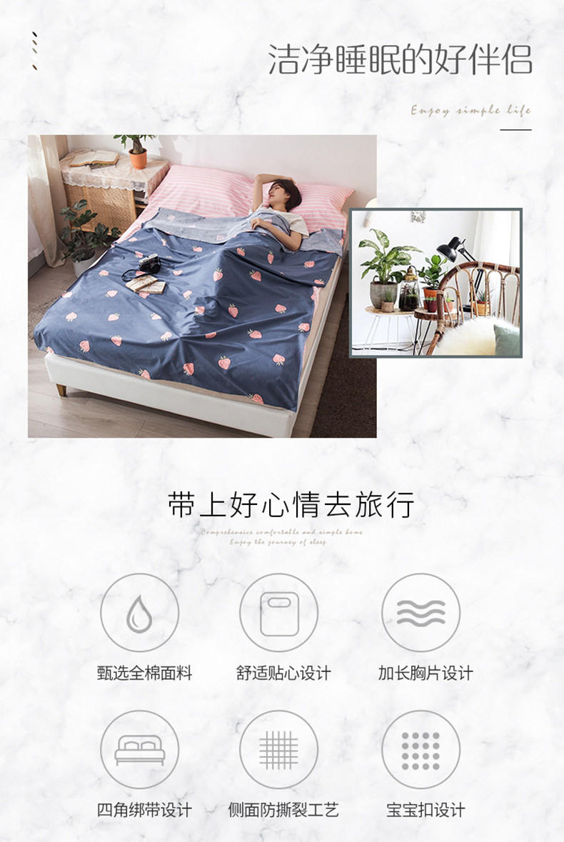 Хлопковый дорожный портативный универсальный тонкий спальный мешок для путешествий на четыре сезона