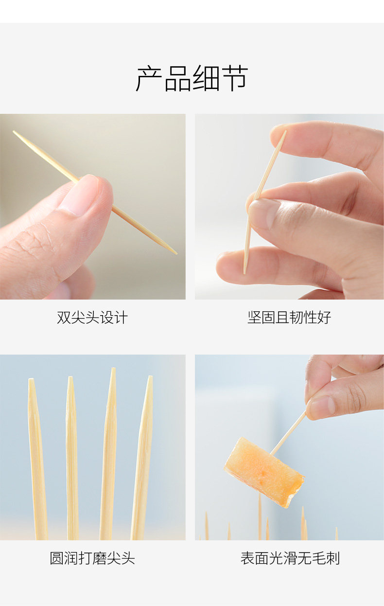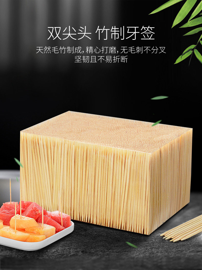 3600 кусочков декоративной бамбуковой зубочистки зубочистки одноразовые, коммерческие, коммерческие оптовые оптовые двойные с двумя головами зубочистка из тонкой плодовой зубов