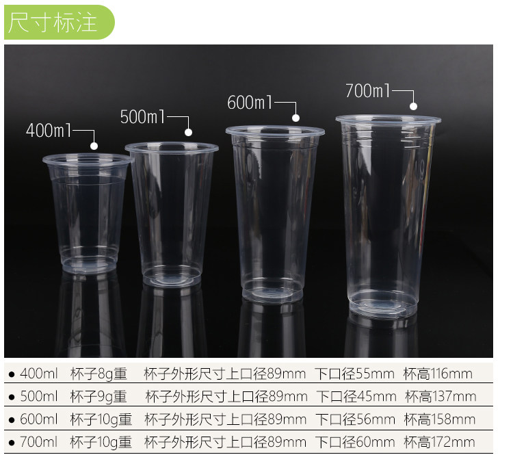 Одноразовая прозрачная пластиковая чайная чашка, увеличенная толщина, 500 мл