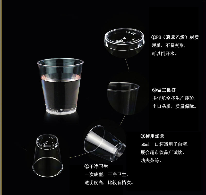 Одноразовая пластиковая маленькая чайная чашка из полипропилена, 50 мл, увеличенная толщина, 5 унции
