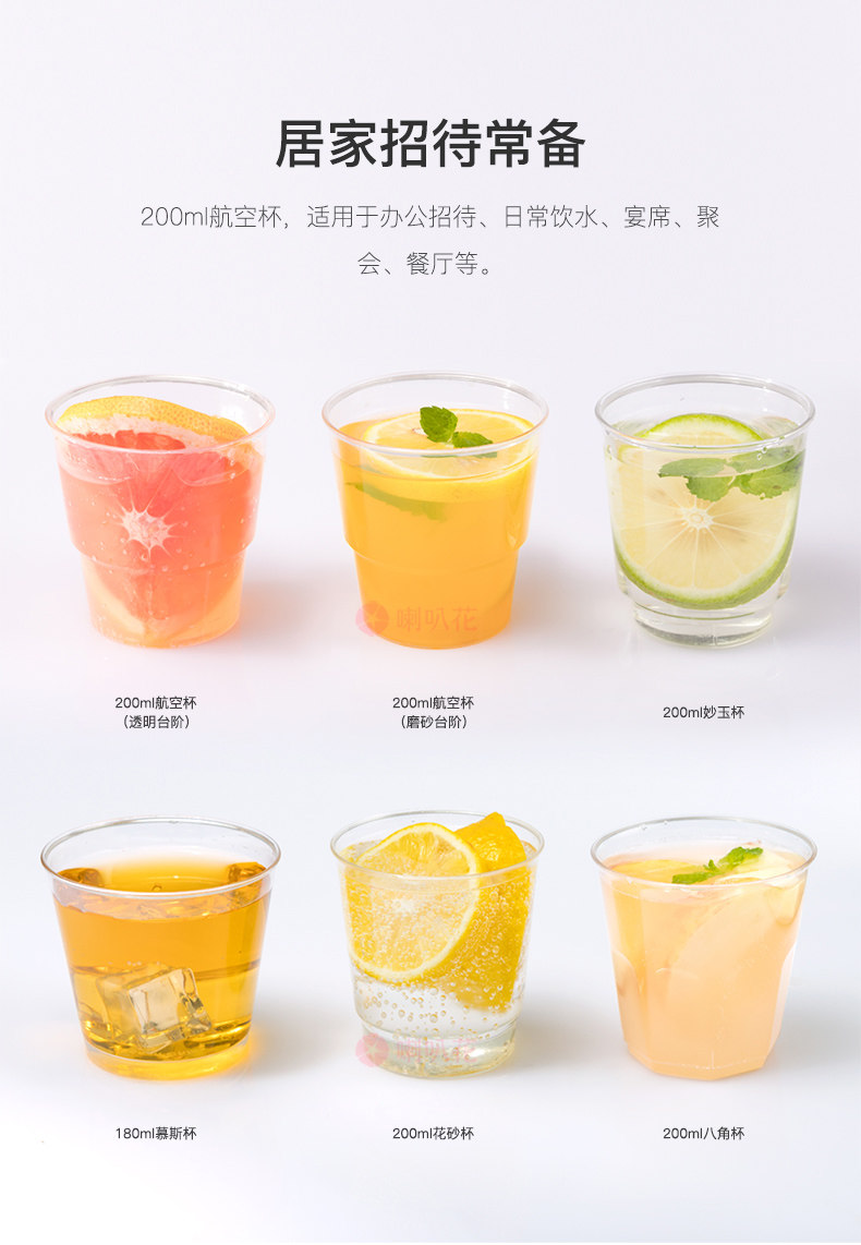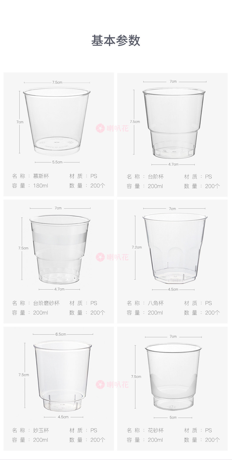 喇叭花 Одноразовый прозрачный пластиковый стакан, 200 мл, увеличенная толщина