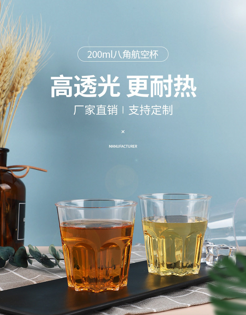 Одноразовая чашка с воздушной чашкой с утолщением восьмиугольника Custom PS прозрачная жесткая пластиковая бриллиантовая чашка Творческая чашка для воды оптом