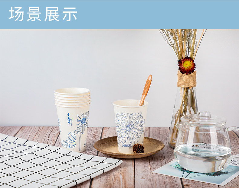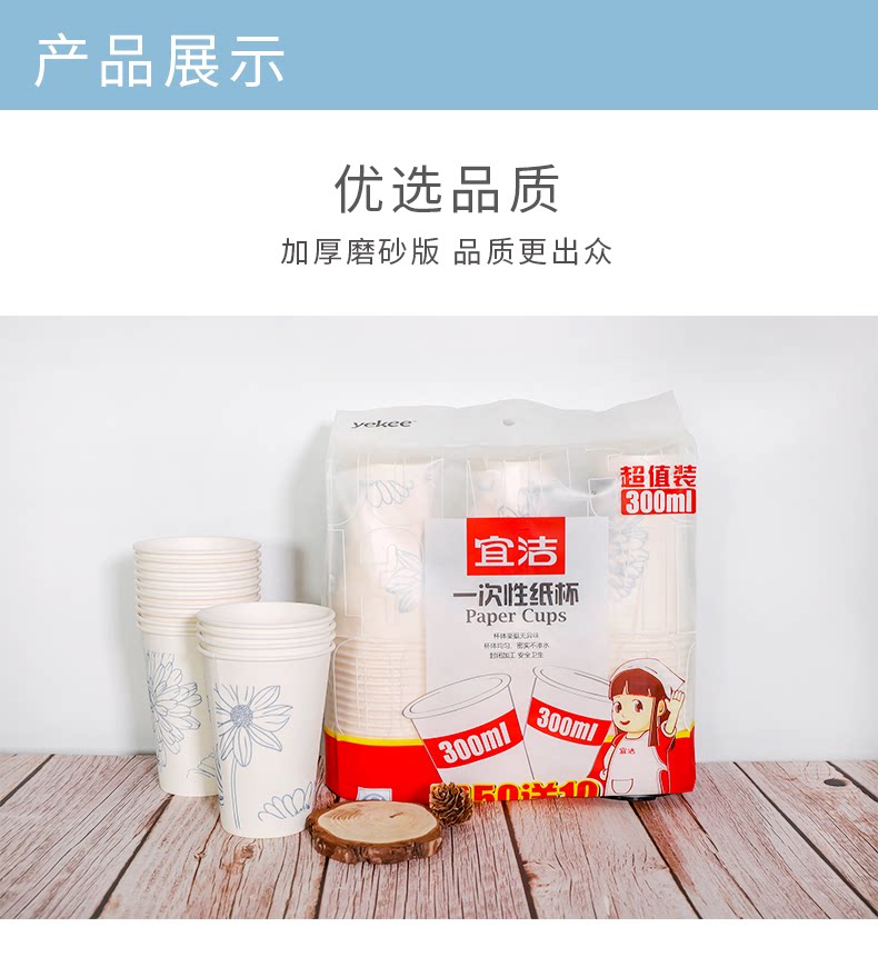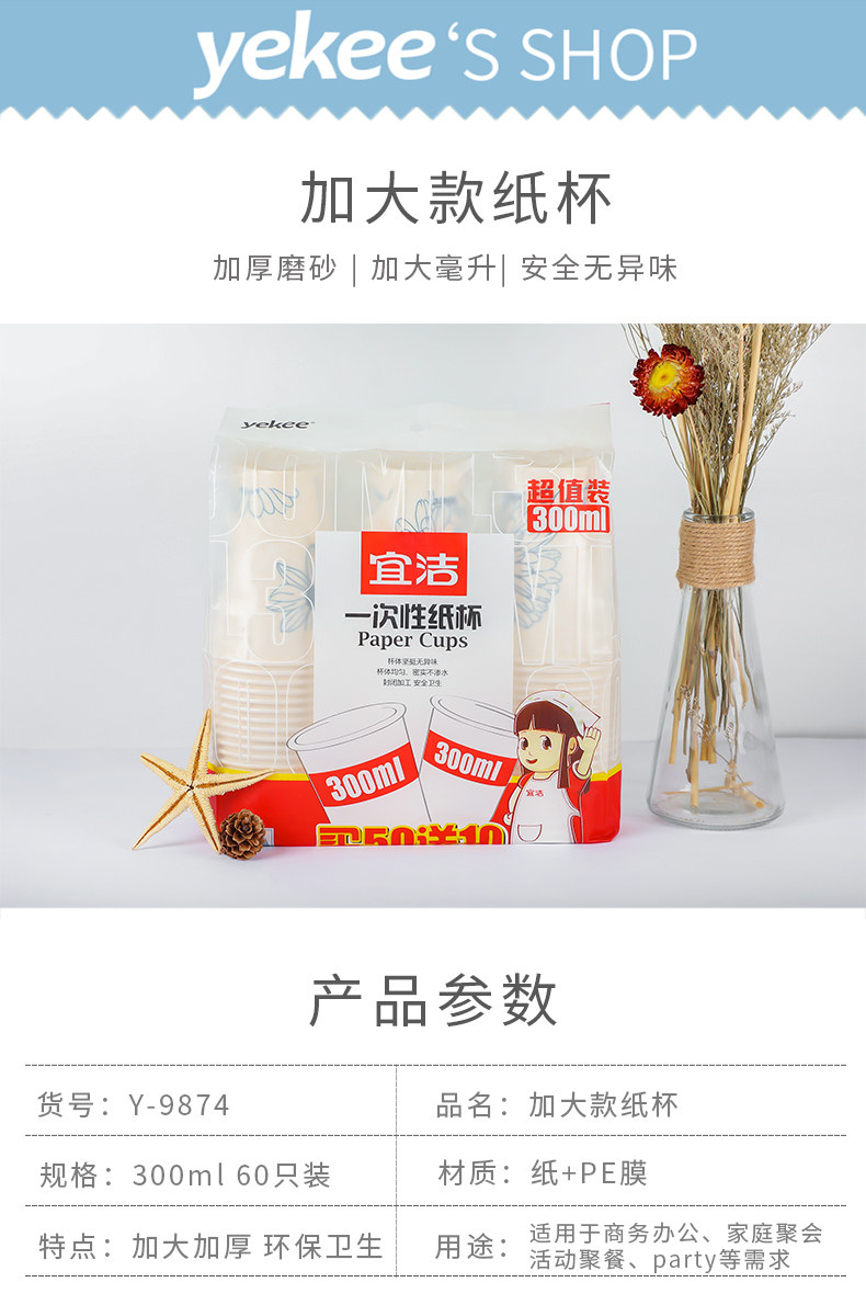 Одноразируемая чашка Yijie с утолщенной большой бумажной чашкой домохозяйственной офис свадебный бизнес чай чаша 300 мл*60