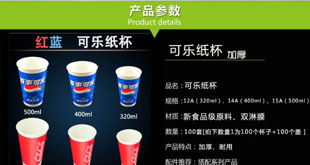 Двойной P400 мл/500 мл толщиной одноразовой одноразовой чашка Pepsi Cup принесите напитки чашка для бумаги холодные напитки бесплатная доставка