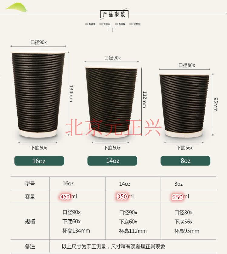 16Унция: прямой: 90 мм Высокий: 133Мм дно: 60 мм Емкость: 500 мл