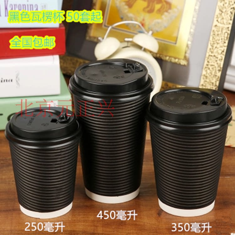 Черная одноразовая утолщенная двойная кофейная чашка изоляция экологически чистая чашка с гончиной чашкой.