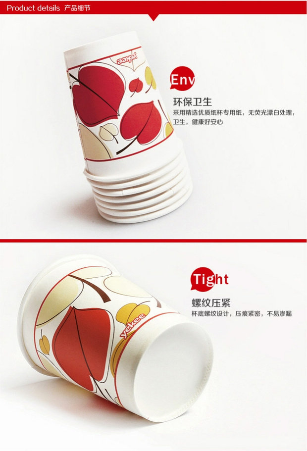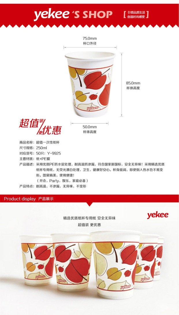 Yijie одноразовая бумажная чашка домохозяйственная чашка с утолщенной чашкой бизнес -чайная чашка офисная чашка 9 унций 250ml9926