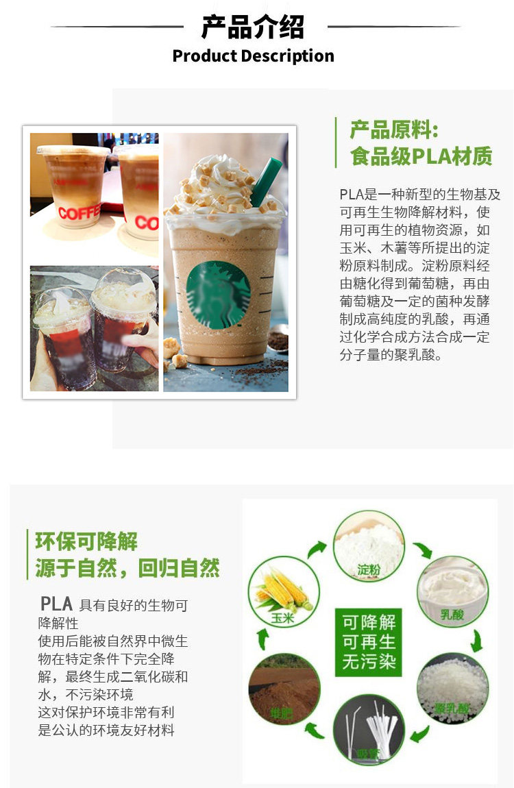 Вся биологическая разлагаемая прозрачная чашка PLA Одноразовая чашка с холодным напитком с молочным чаем кофе фруктовый сок в упаковке