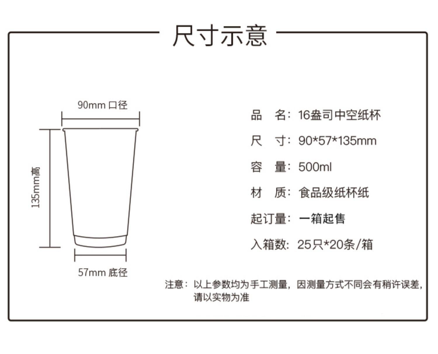 - 16 унций Cowhide Hollow Cup 500 штук/коробка