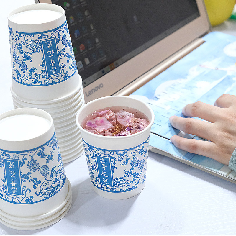 Синий и белый фарфоровый одноразовый бумажный чашка сгущенной чашки упаковывает 1000 домашней бумажной чашкой офис, пить кофейные чашки