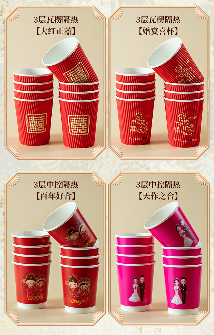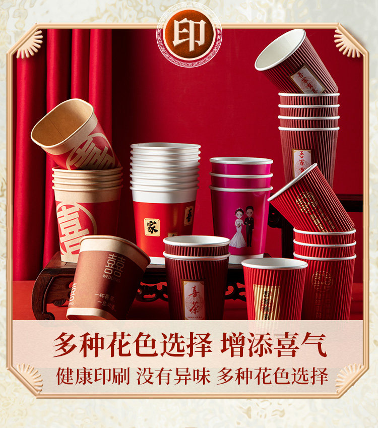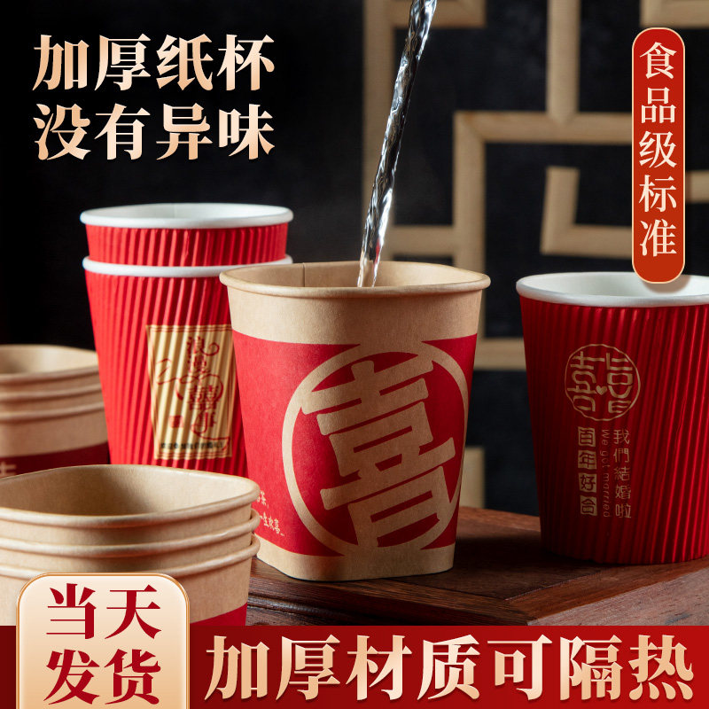 Утолщенный одноразовый свадебный бумажный стаканчик, свадебный банкет, красная чашка, свадебные принадлежности, чашка чая