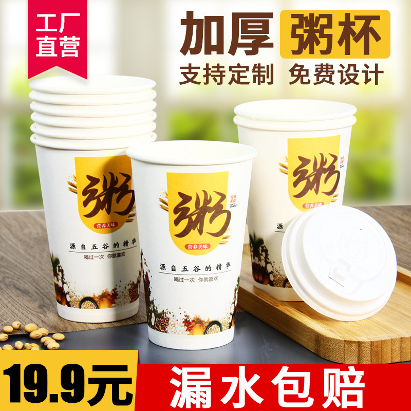 Каша чашка одноразовая коммерческая утолщенная бумажная чашка с крышкой, завтрак, хорошая каша, кара каска для питания каша, высокая температура и портативная портативная