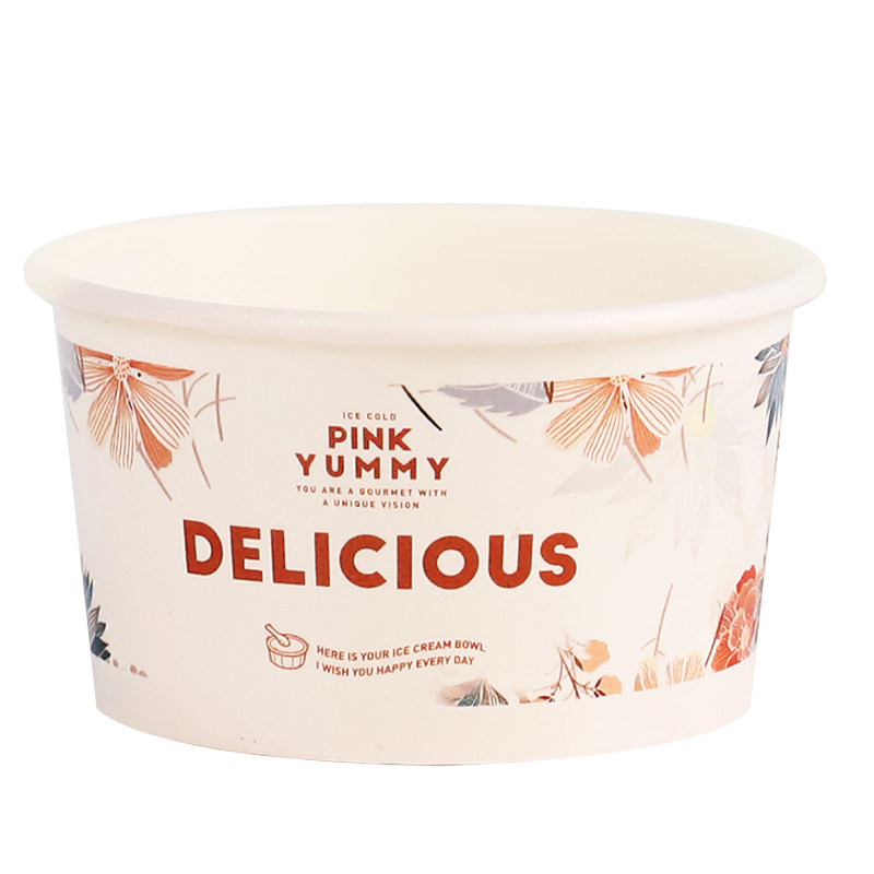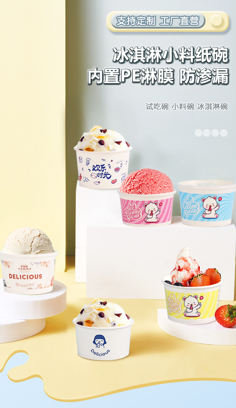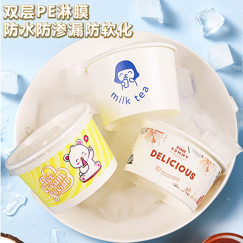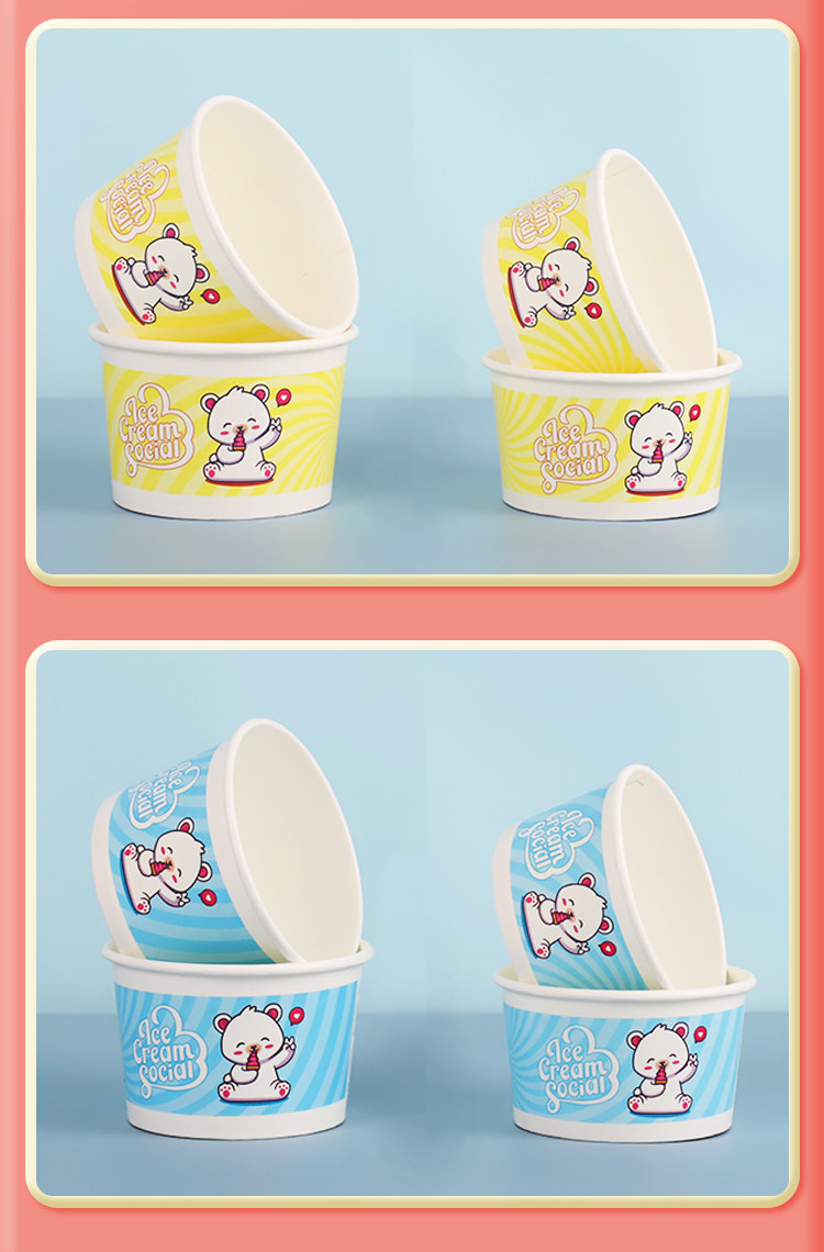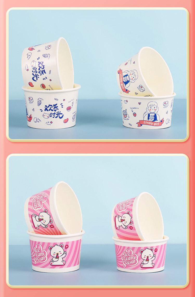Бумажная чаша для мороженого из одного мороженого мультфильма для мультфильма для пирога с жареной бумажной чашкой для йогурта с логотипом на крышке Custom