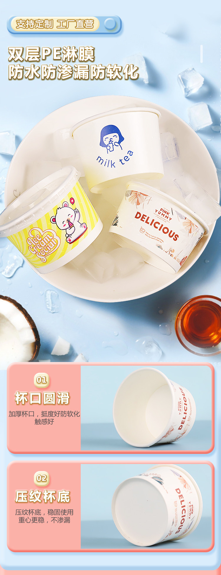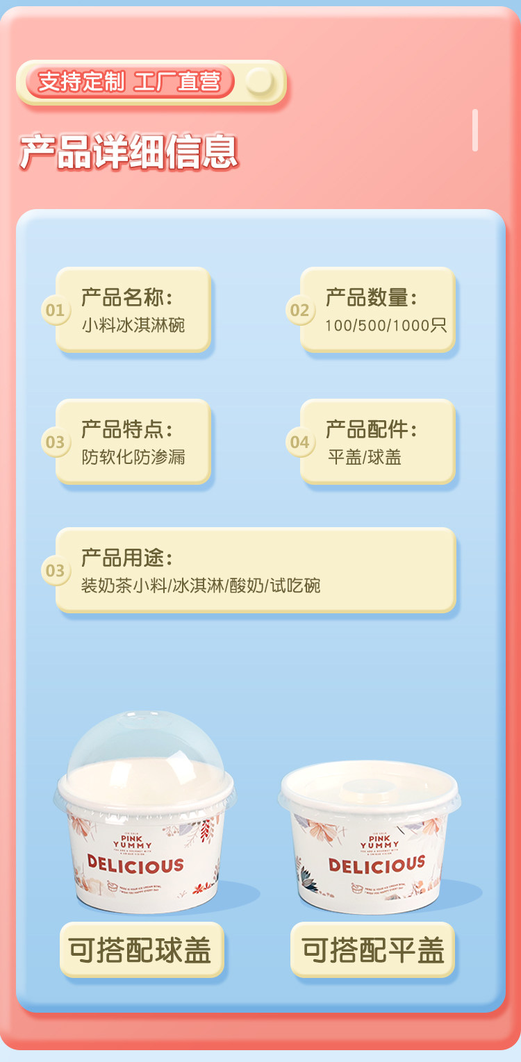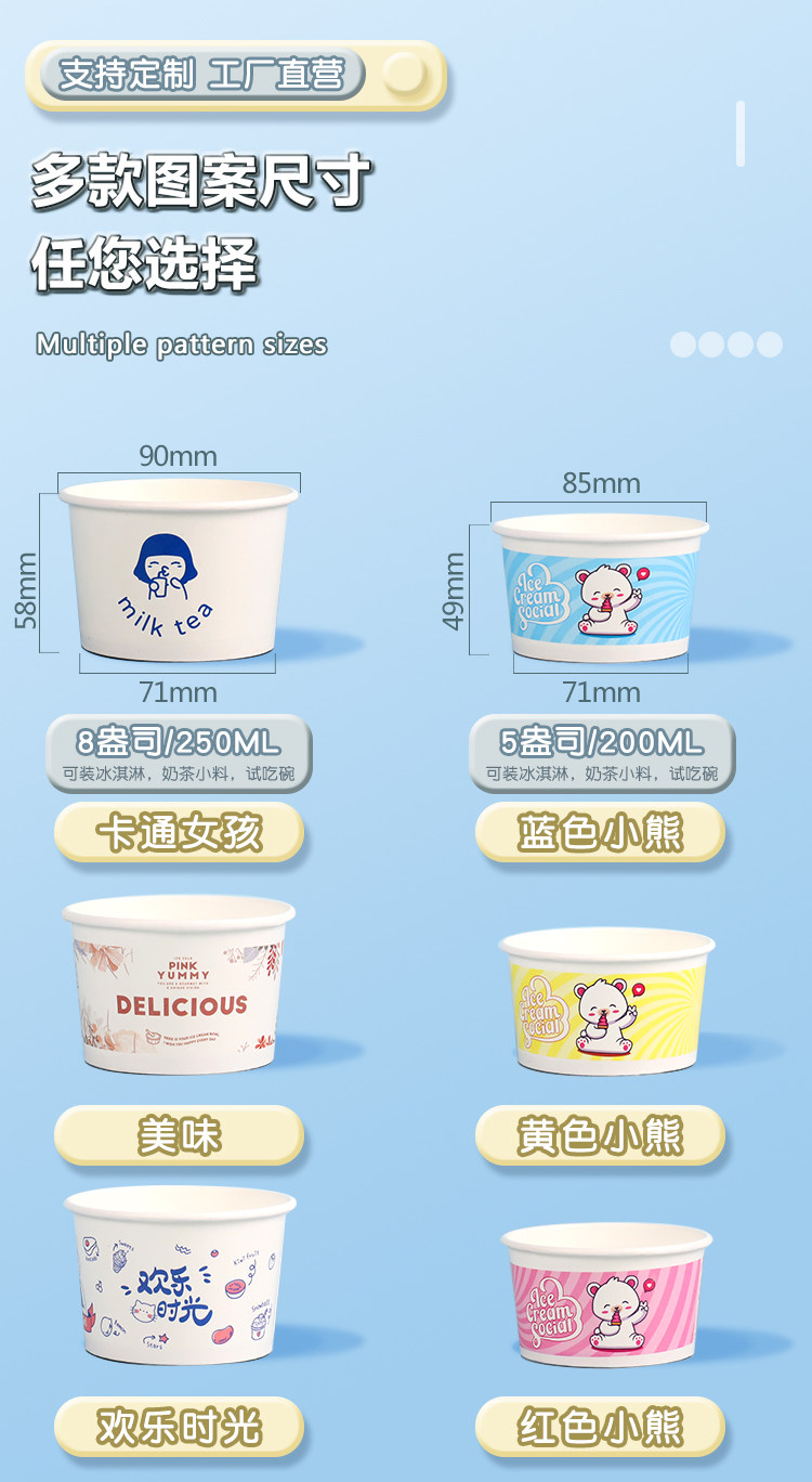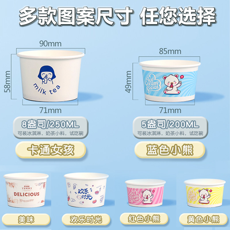 Бумажная чаша для мороженого из одного мороженого мультфильма для мультфильма для пирога с жареной бумажной чашкой для йогурта с логотипом на крышке Custom