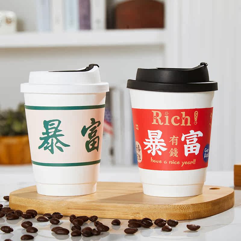 - 12 унций чашка+черная крышка u -type+красный набор чашек более богатой чашки