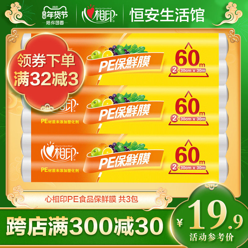 心相印 Кухонная кухня сохранение фильма PE полиэтиленовая пленка большая ролл сохранение пленки оптовая упаковка Семейство 3 пакеты