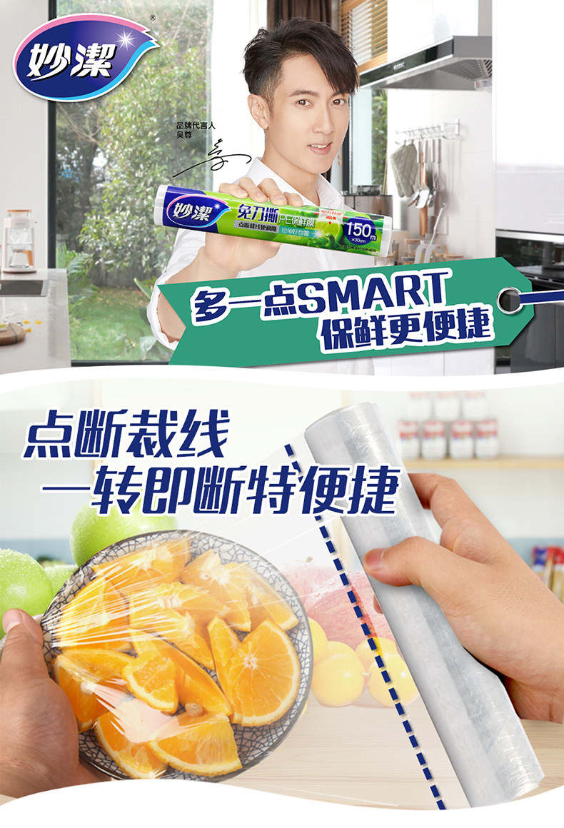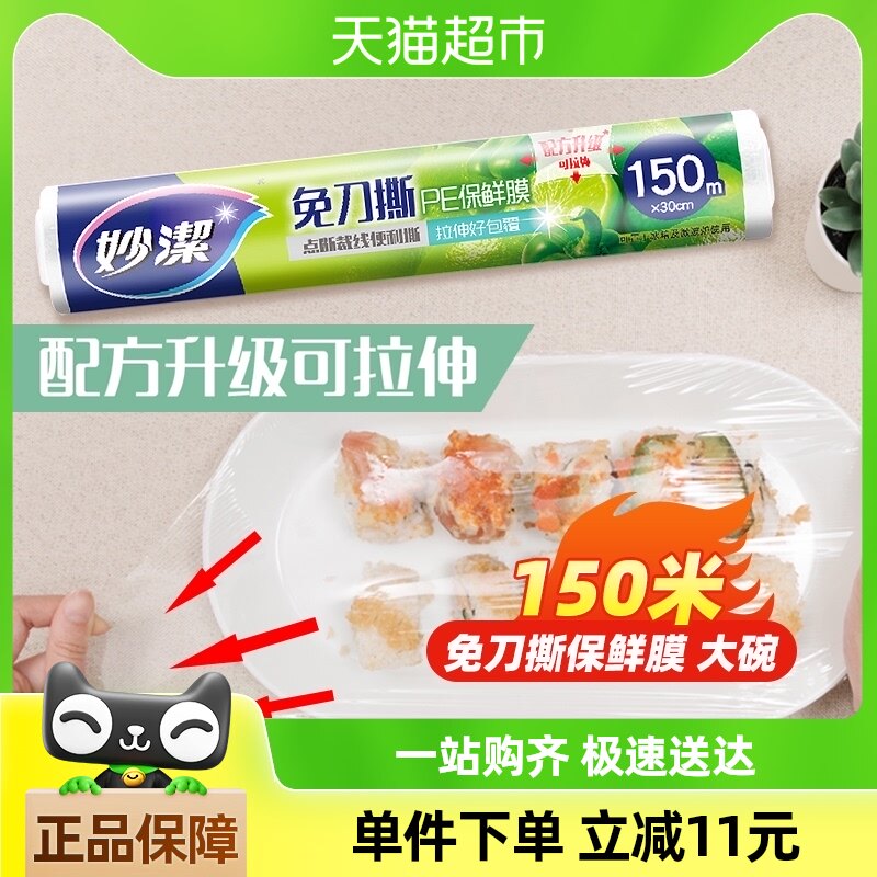 妙洁 Бесплатная пластовая пластиковая пленка на 150 метров модернизированная версия можно растянуть пищевые дома кухонные продукты питания