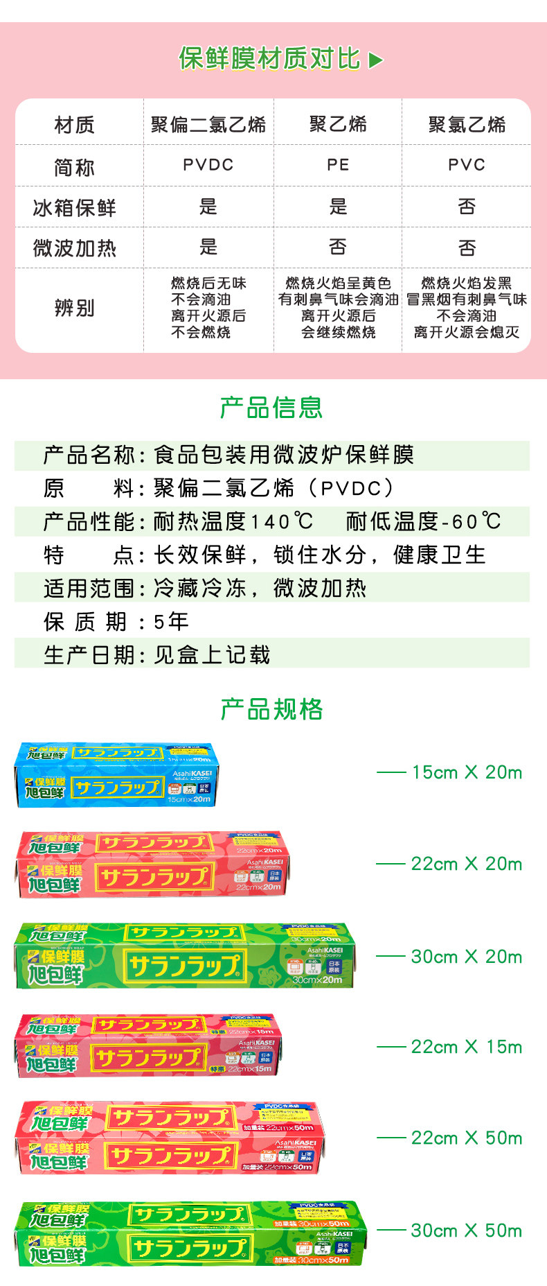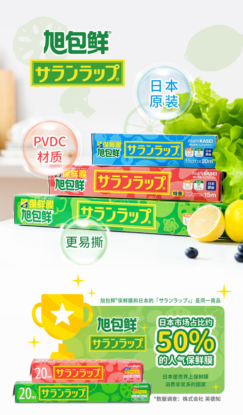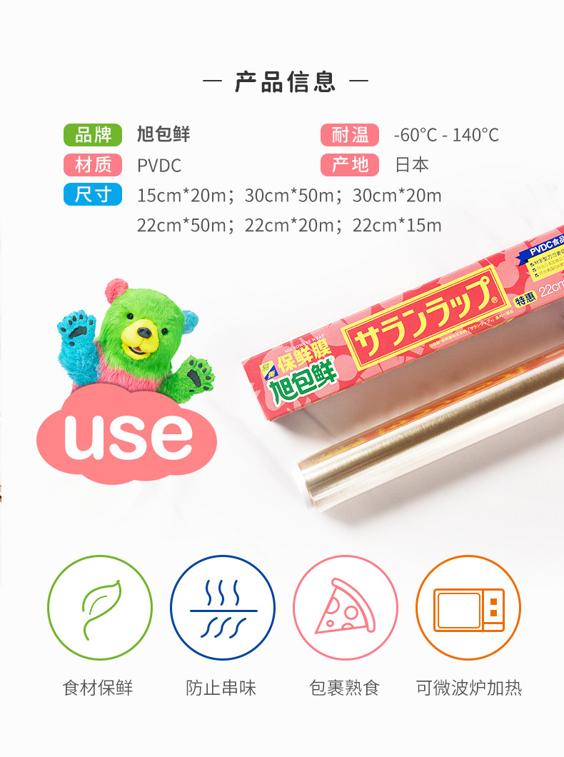 旭包鲜 Японская набор пищи PVDC Pvdc Cling Colling может в микроволновой печи с высокой температурой кухни домохозяйства плюс